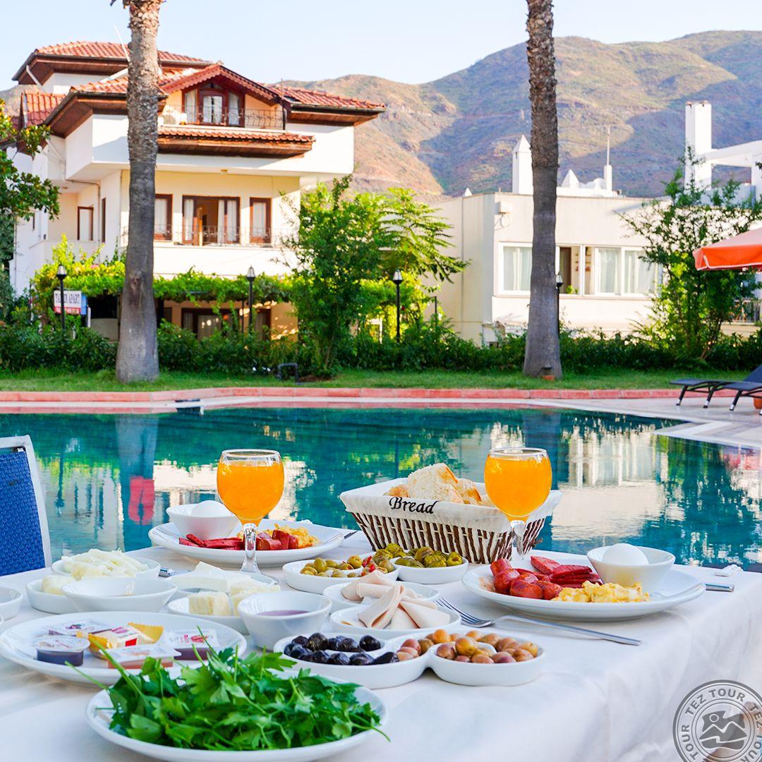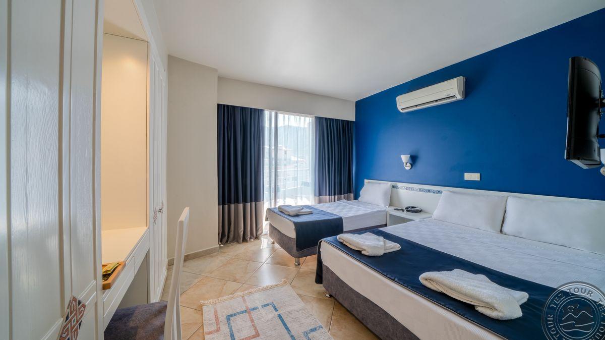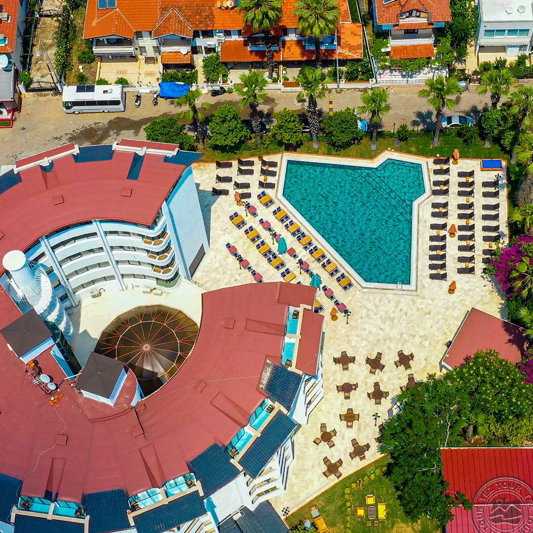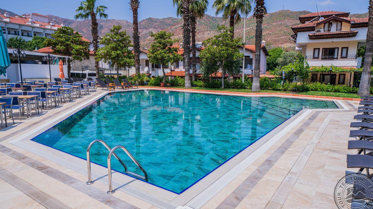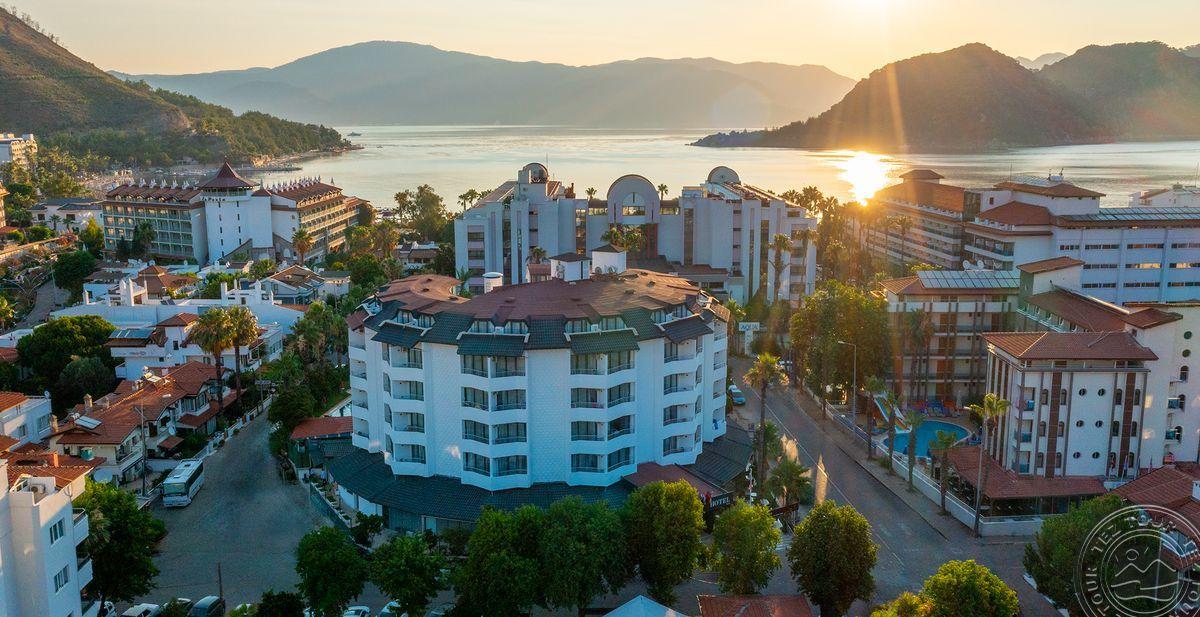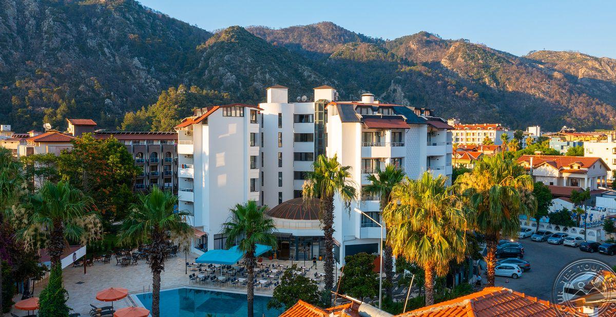 в поселке Ичмелер, в 100 км от аэропорта г. Даламан, в 130 км от аэропорта Бодрума, в 9 км от центра г. Мармарис, в 200 м от городского пляжа.