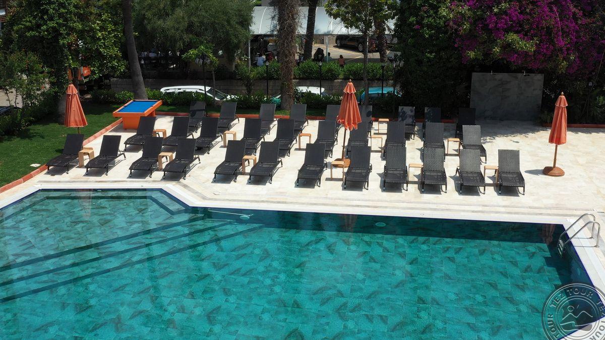 • у бассейна зонтики, шезлонги, матрасы: бесплатно