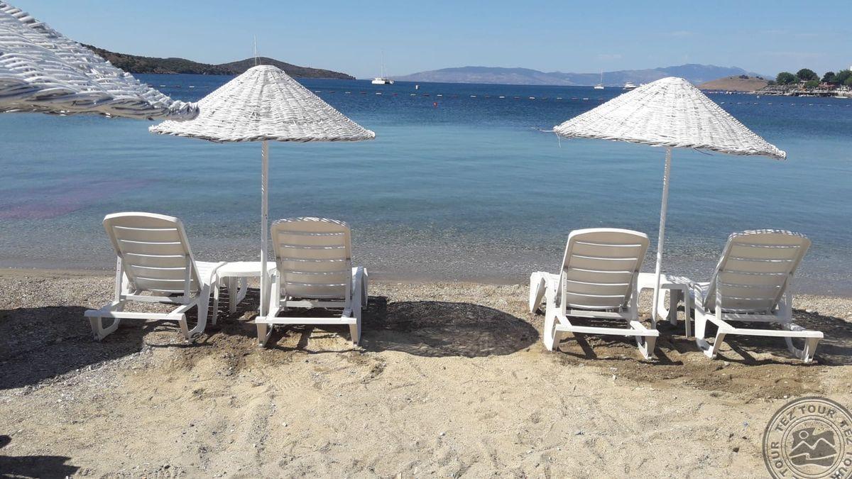 в 45 км от аэропорта Бодрума и в 6 км от центра Бодрума, в поселке Битез, в 250 м от пляжа через дорогу.