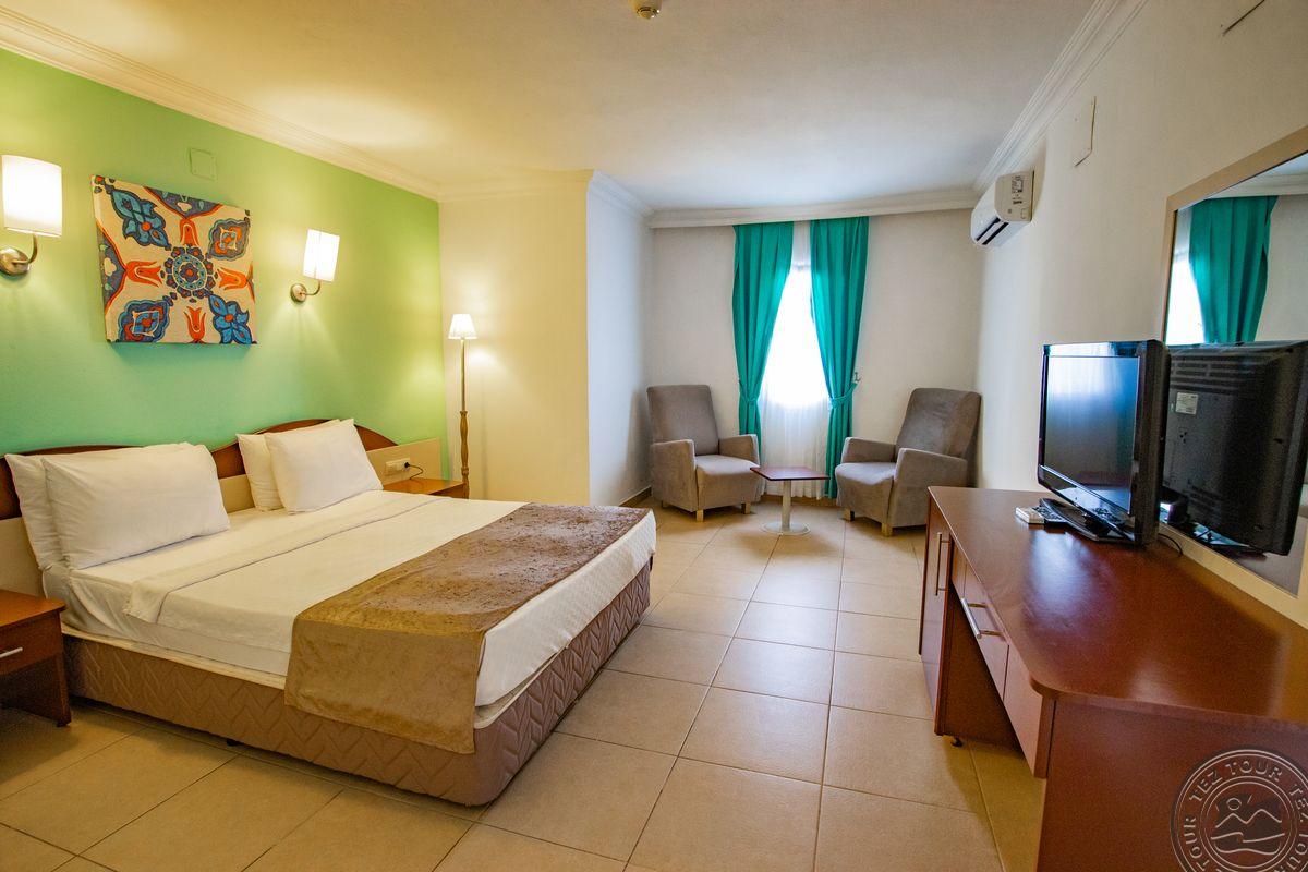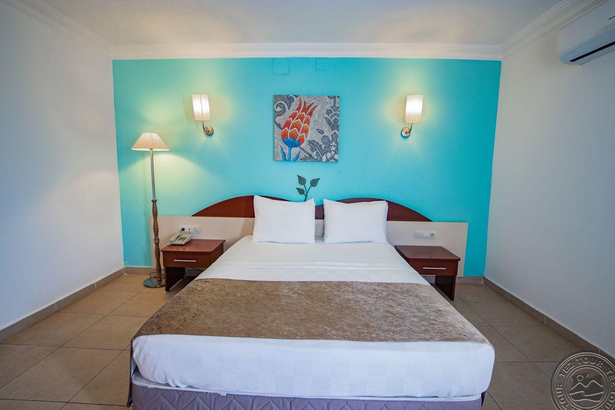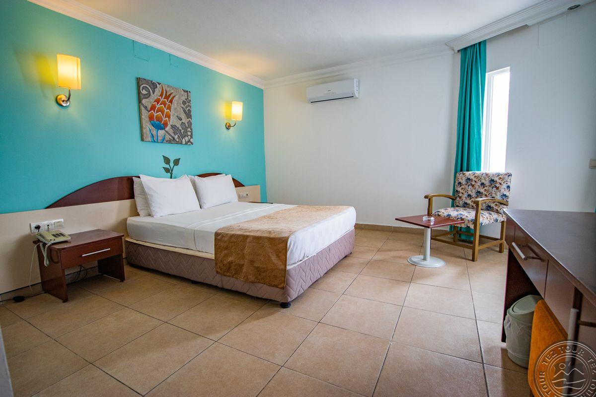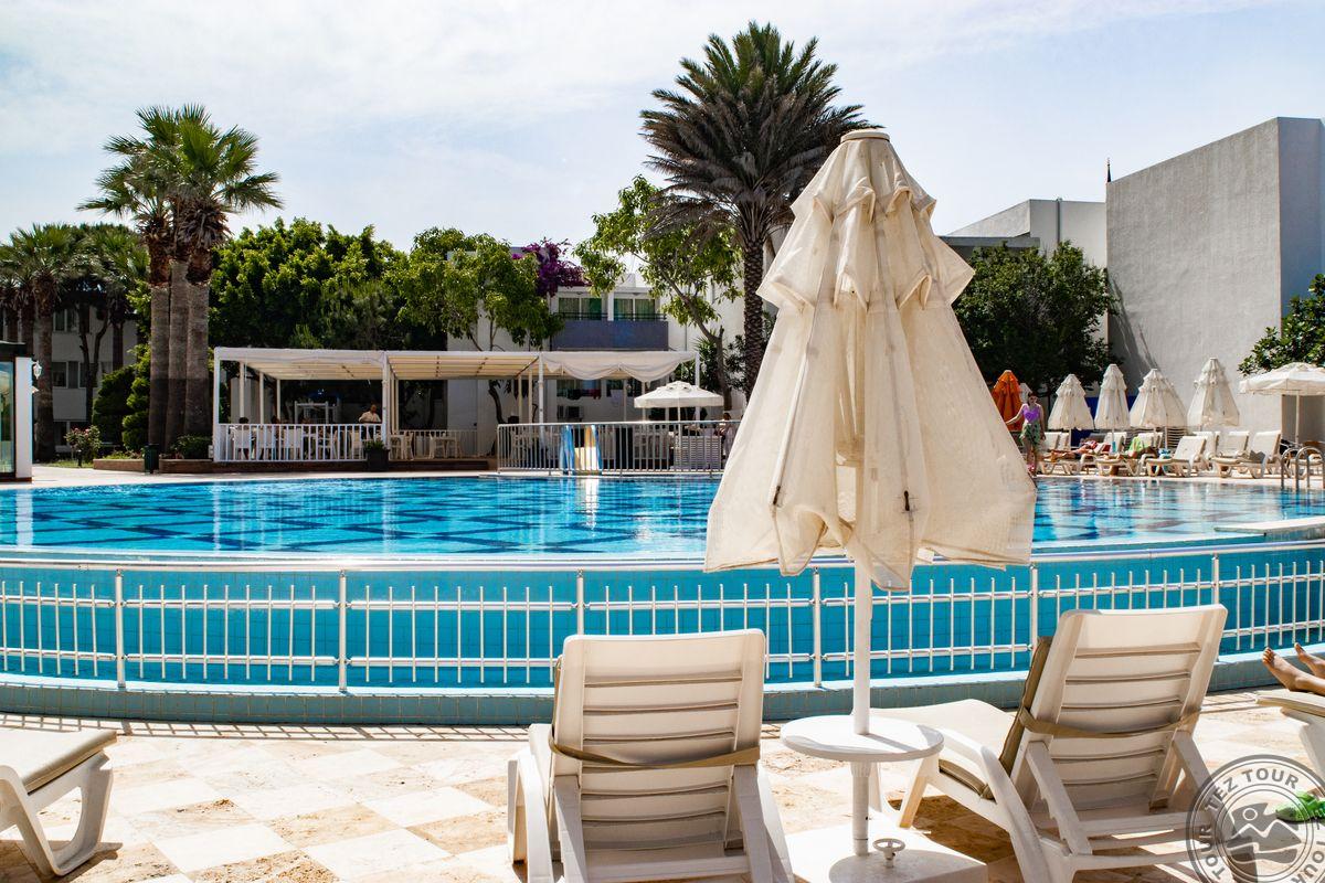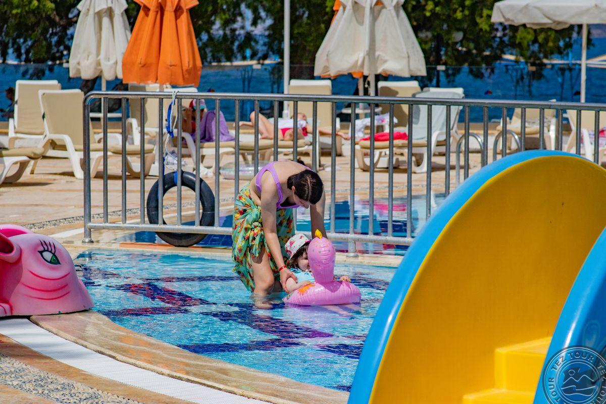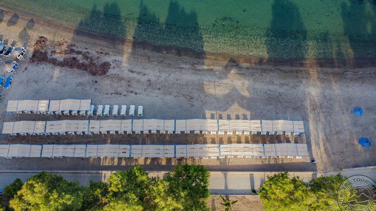 в поселке Тургутрейс, в 53 км от аэропорта Бодрума, в 18 км от Бодрума, на берегу моря.