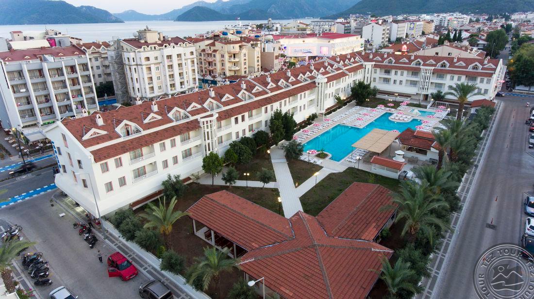 в 90 км от аэропорта г. Даламан, в 133 км от аэропорта Бодрума, в 2 км от центра г. Мармарис, в 400 м от пляжа.