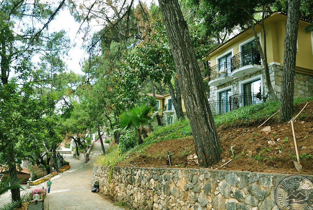 в 100 км от аэропорта г. Даламан, в 135 км от аэропорта г. Бодрума, в 4.5 км от центра Мармариса, в 80 м через дорогу от собственного пляжа.