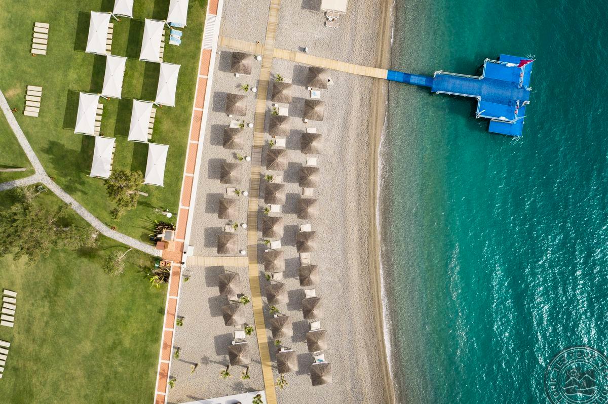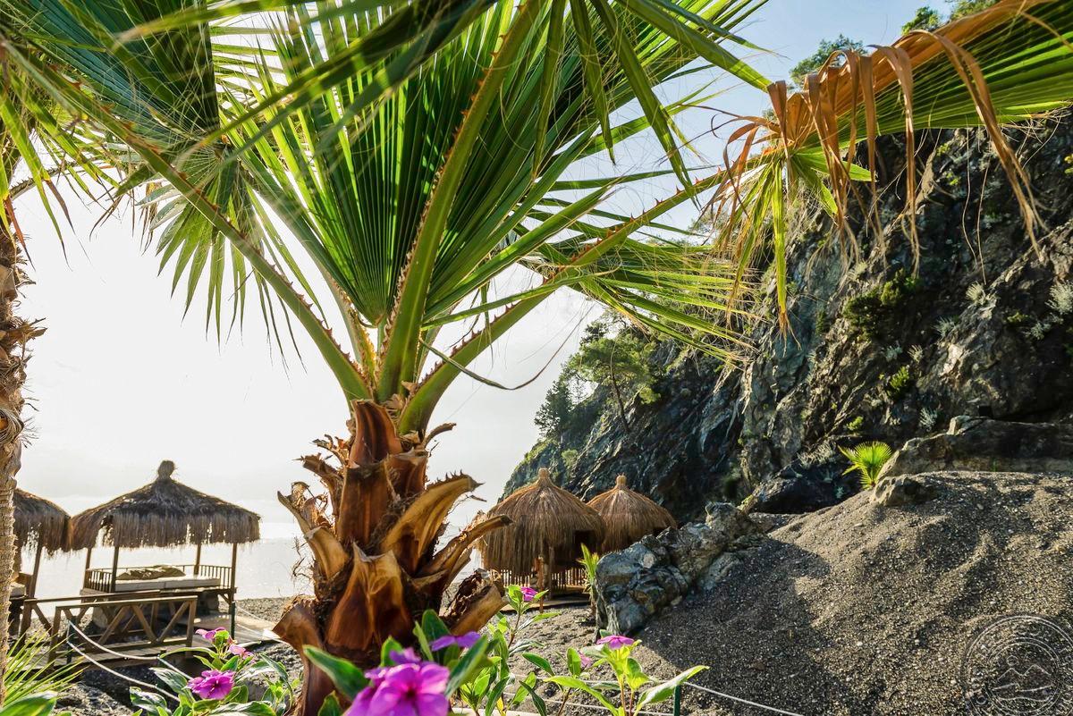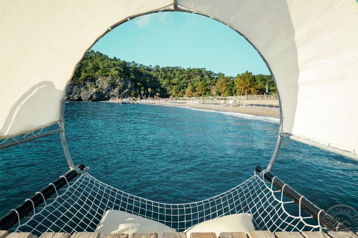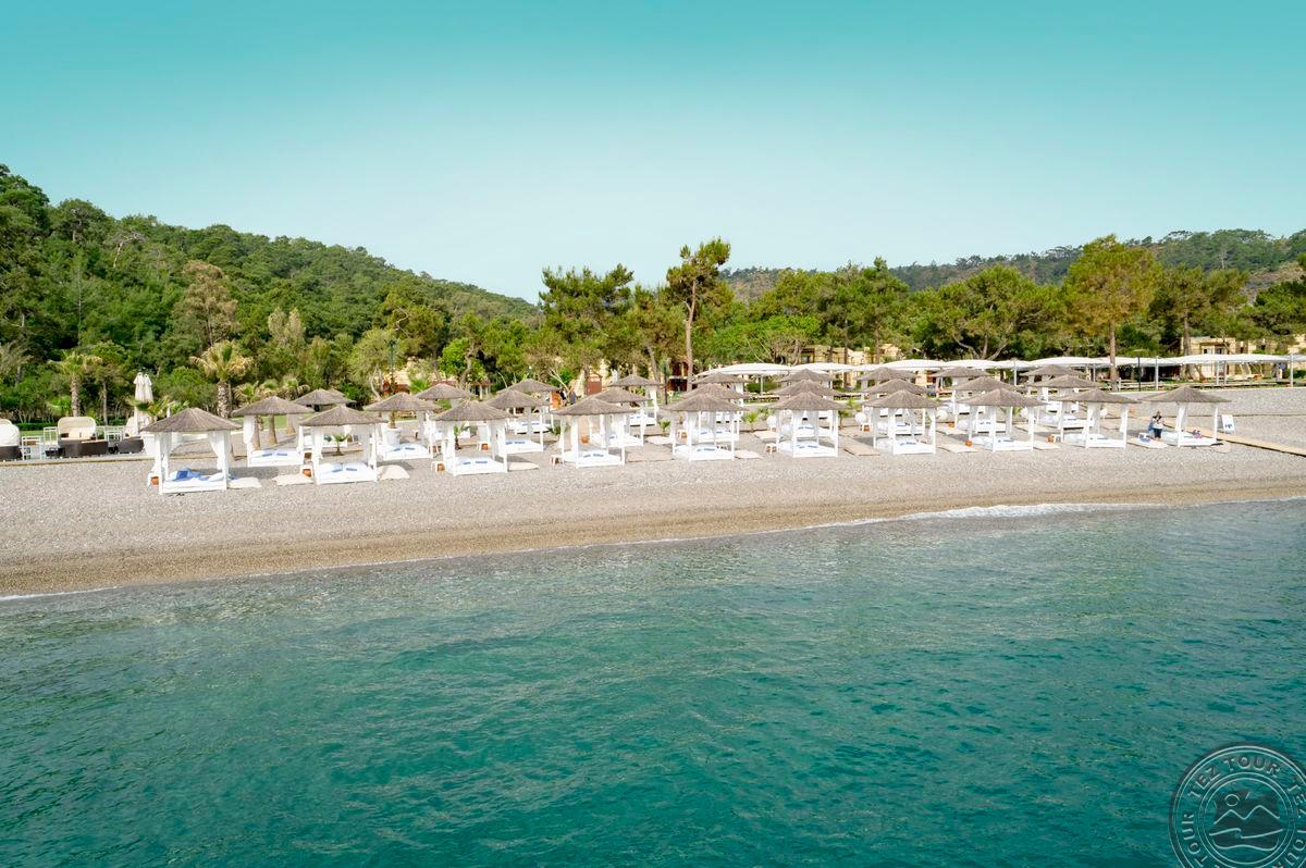 в Чамьюва, в 65 км от аэропорта г. Анталья, в 50 км от центра г. Анталья, в 10 км от центра Кемера, на берегу моря.