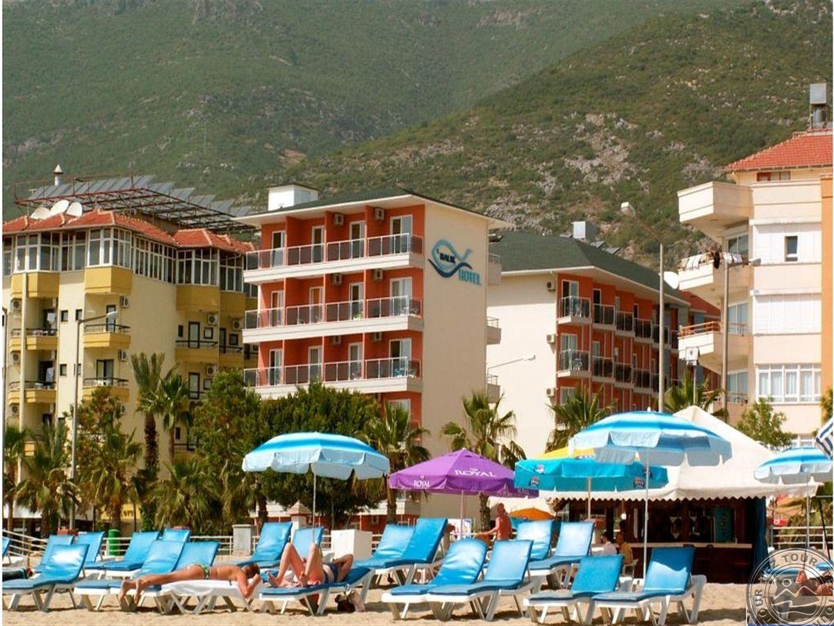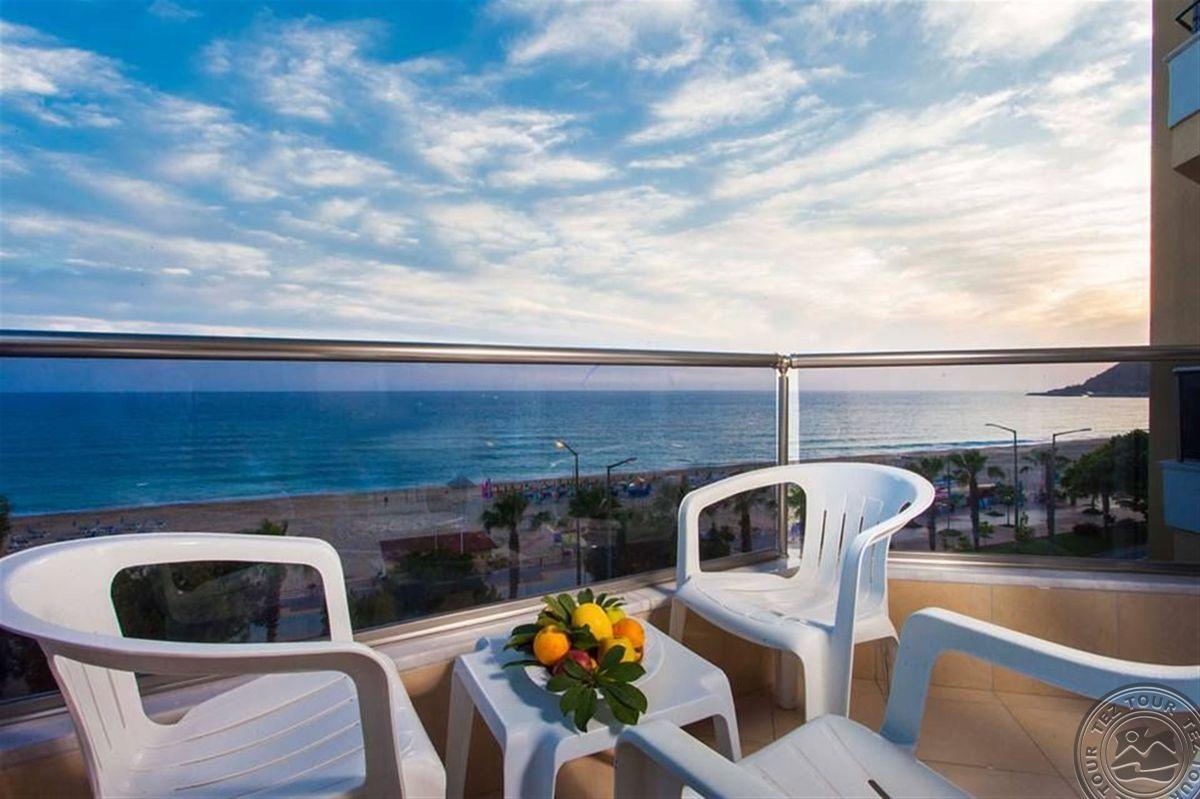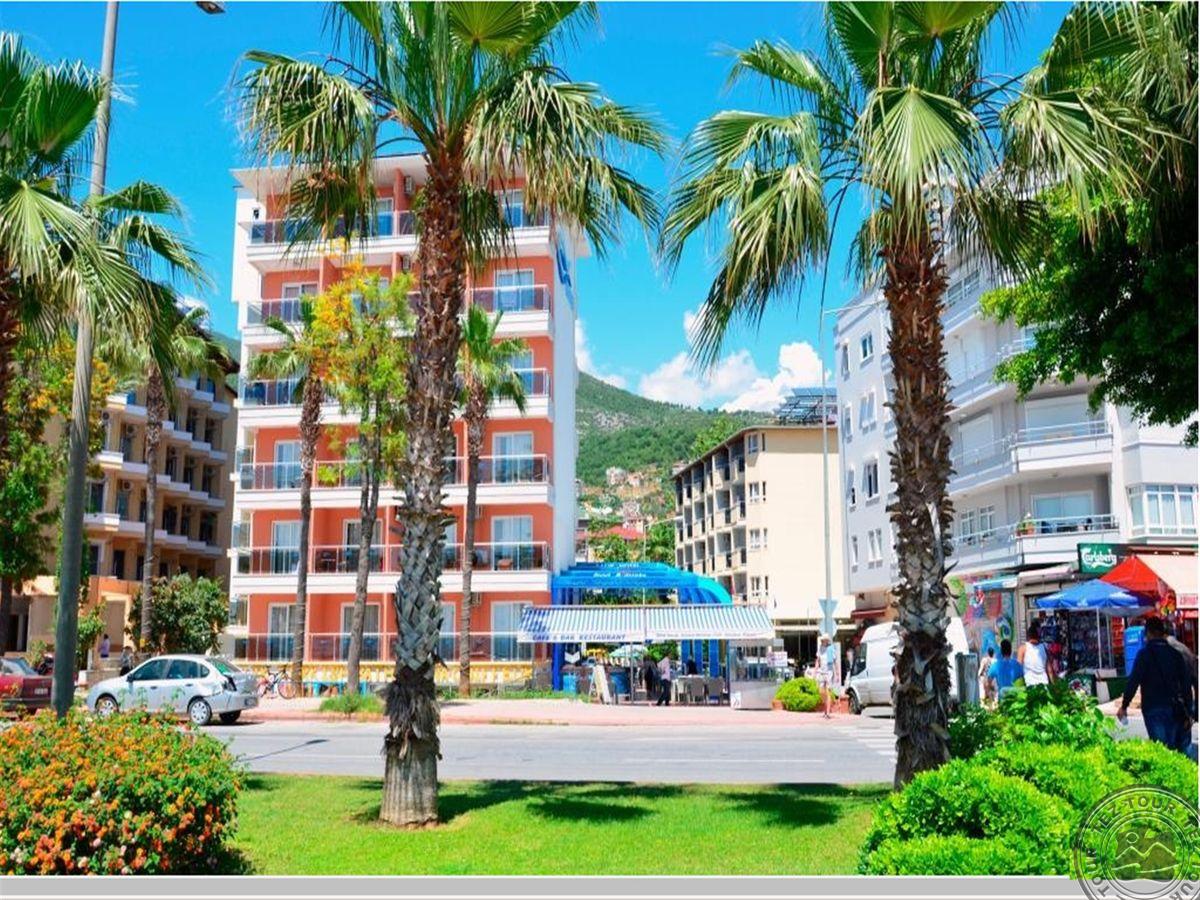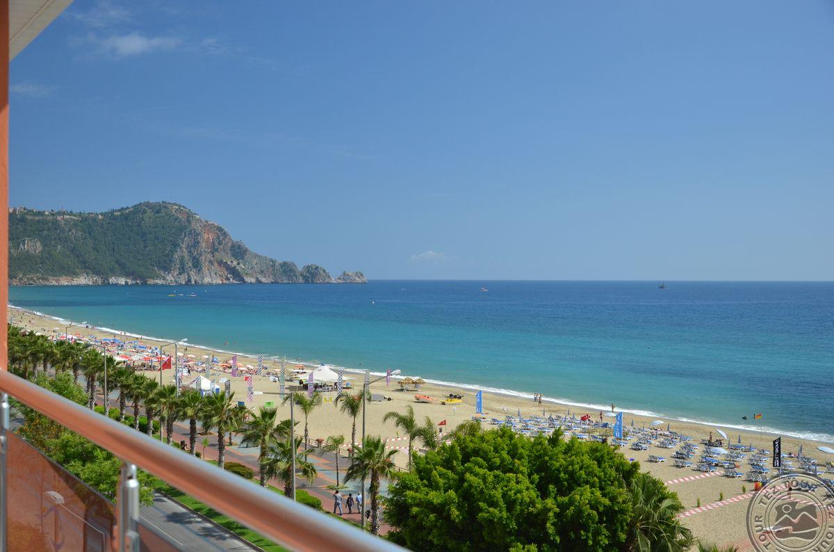 в 120 км от аэропорта г. Анталья, в центре г. Аланья, через дорогу от знаменитого песчаного пляжа Клеопатры.