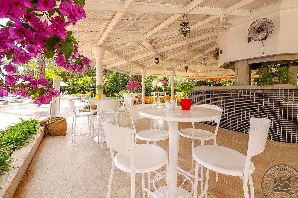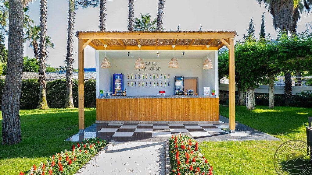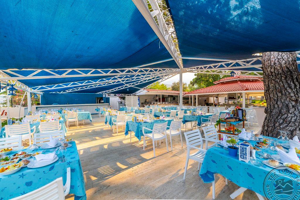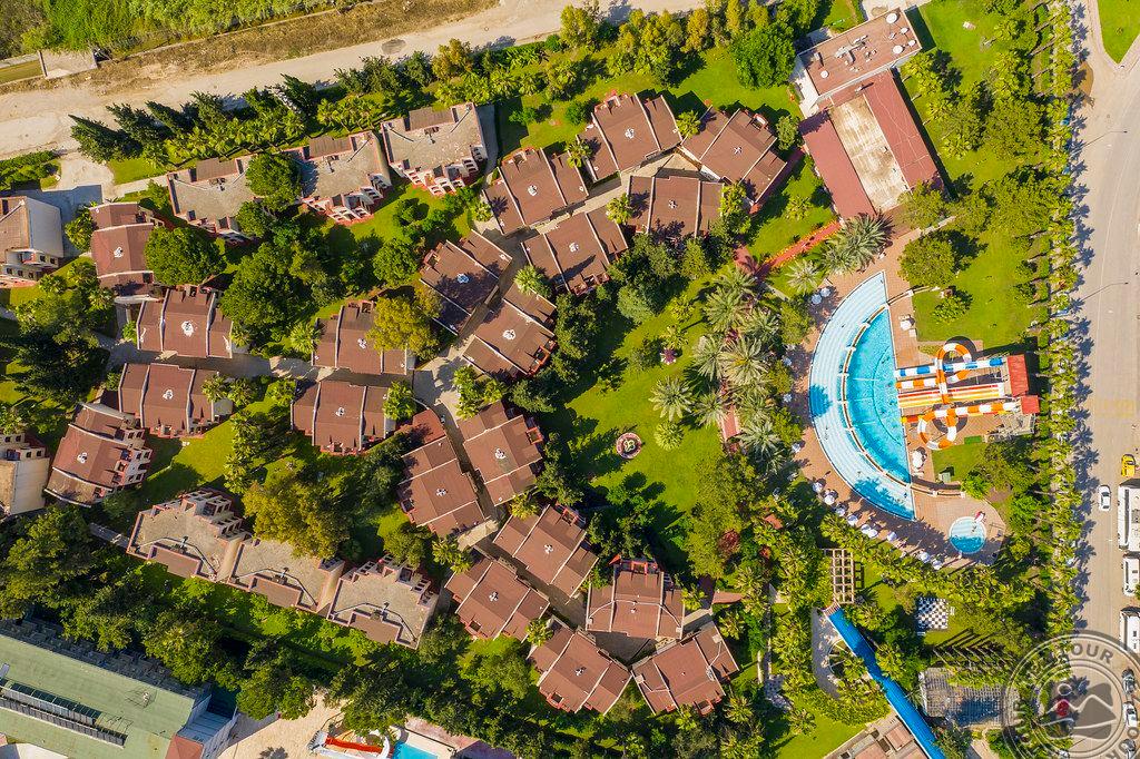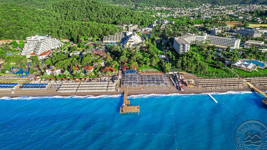 в 46 км от аэропорта г. Анталья, в 36 км от г. Анталья, в 6 км от г. Кемер, в поселке Гёйнюк, на самом берегу моря.