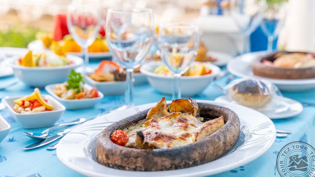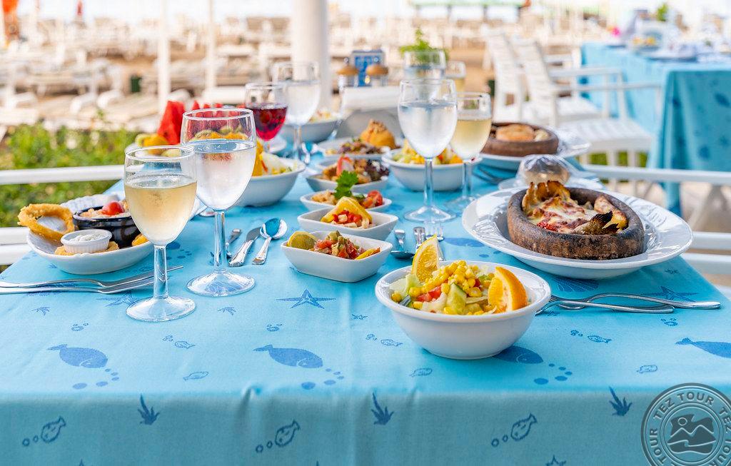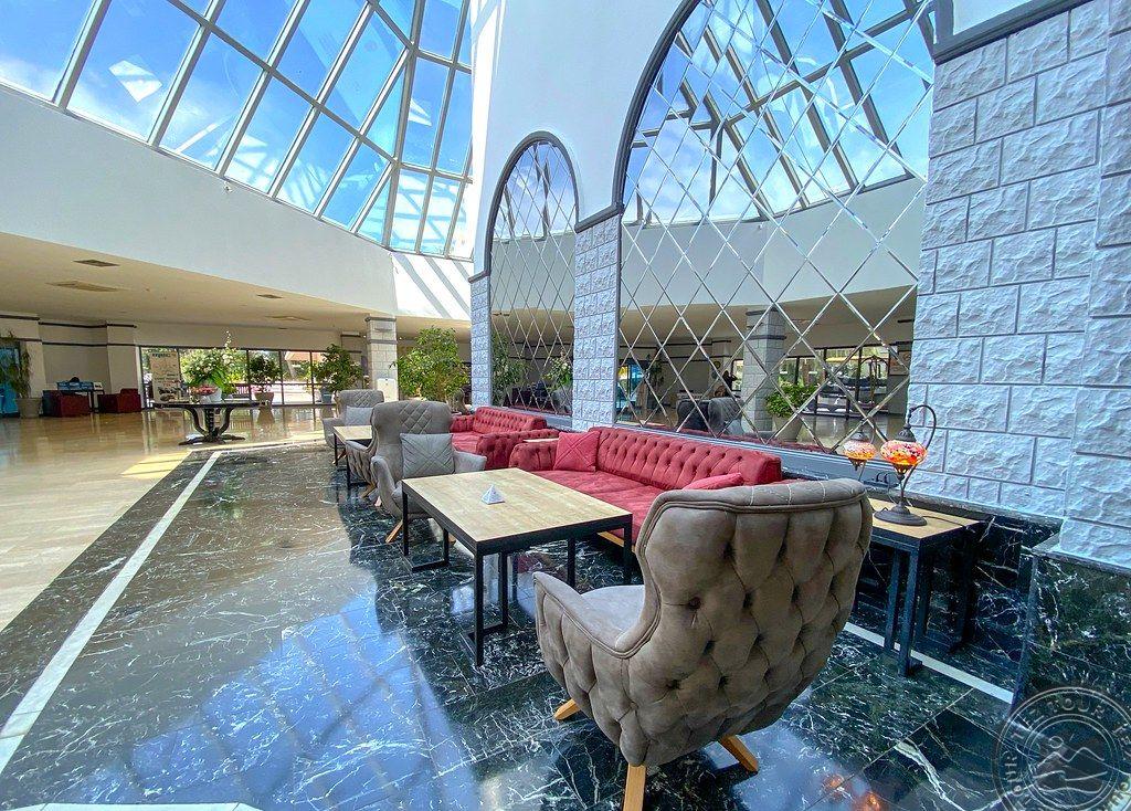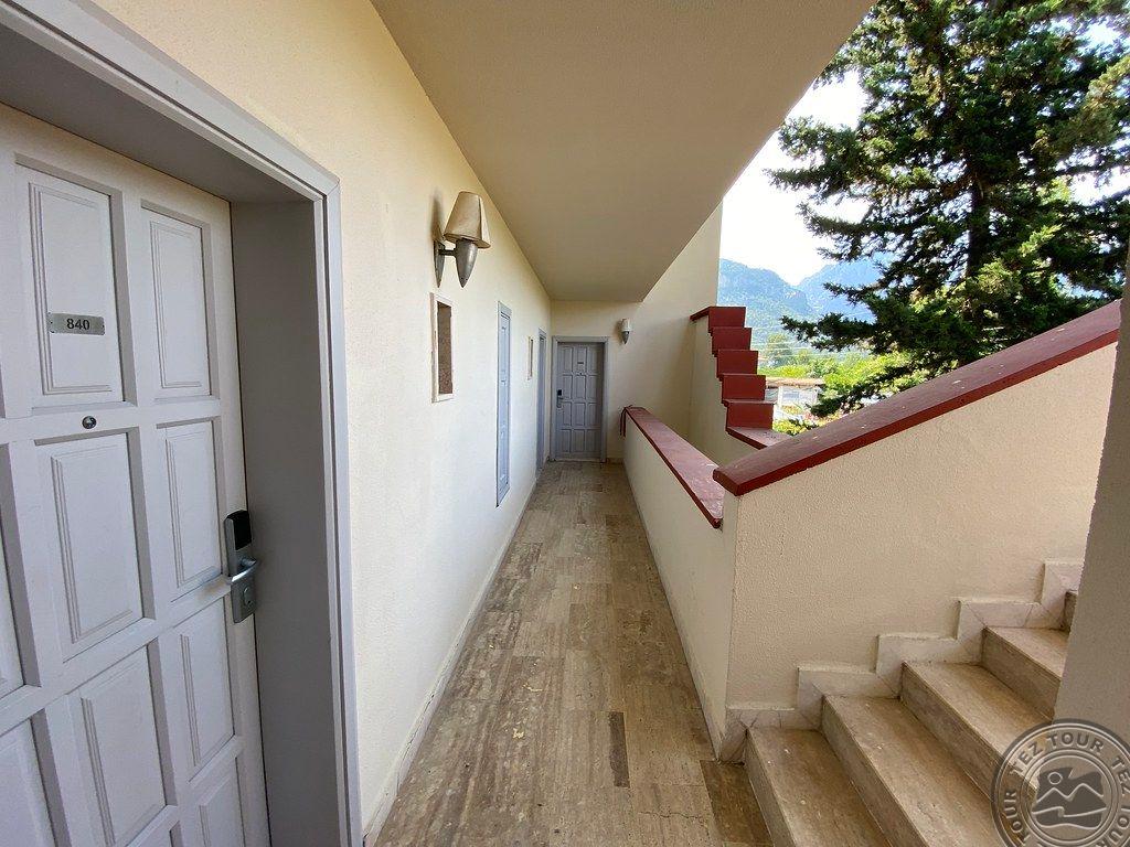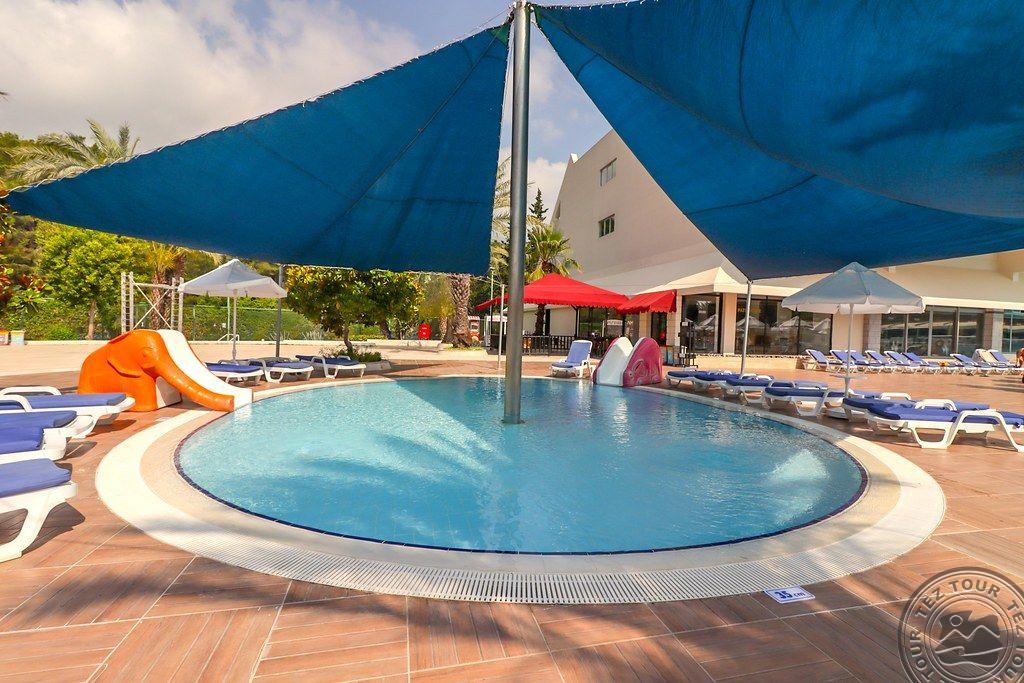 в 46 км от аэропорта г. Анталья, в 36 км от г. Анталья, в 6 км от г. Кемер, в поселке Гёйнюк, на самом берегу моря.