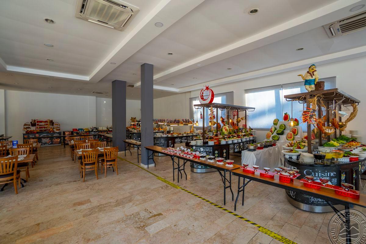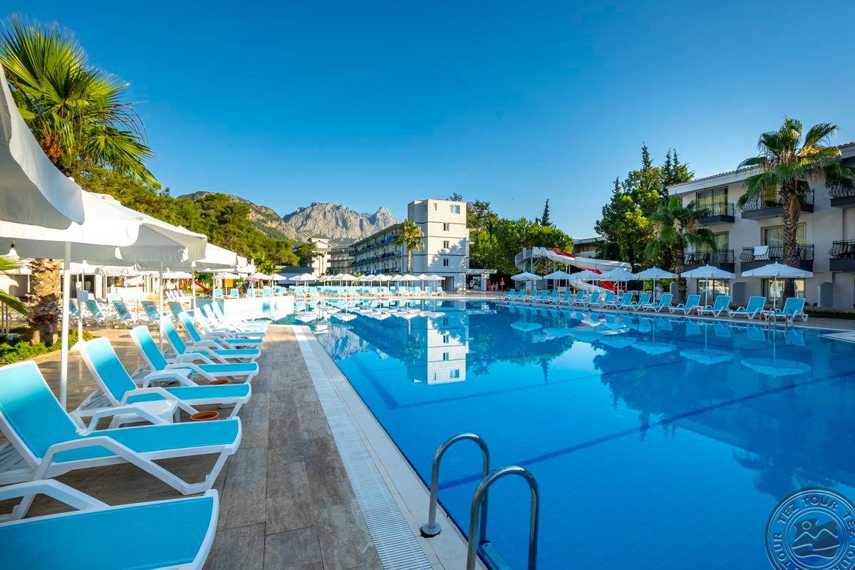 в 48 км от аэропорта г. Анталья, в 8 км от центра г.Кемер, в 300 м от собственного пляжа.