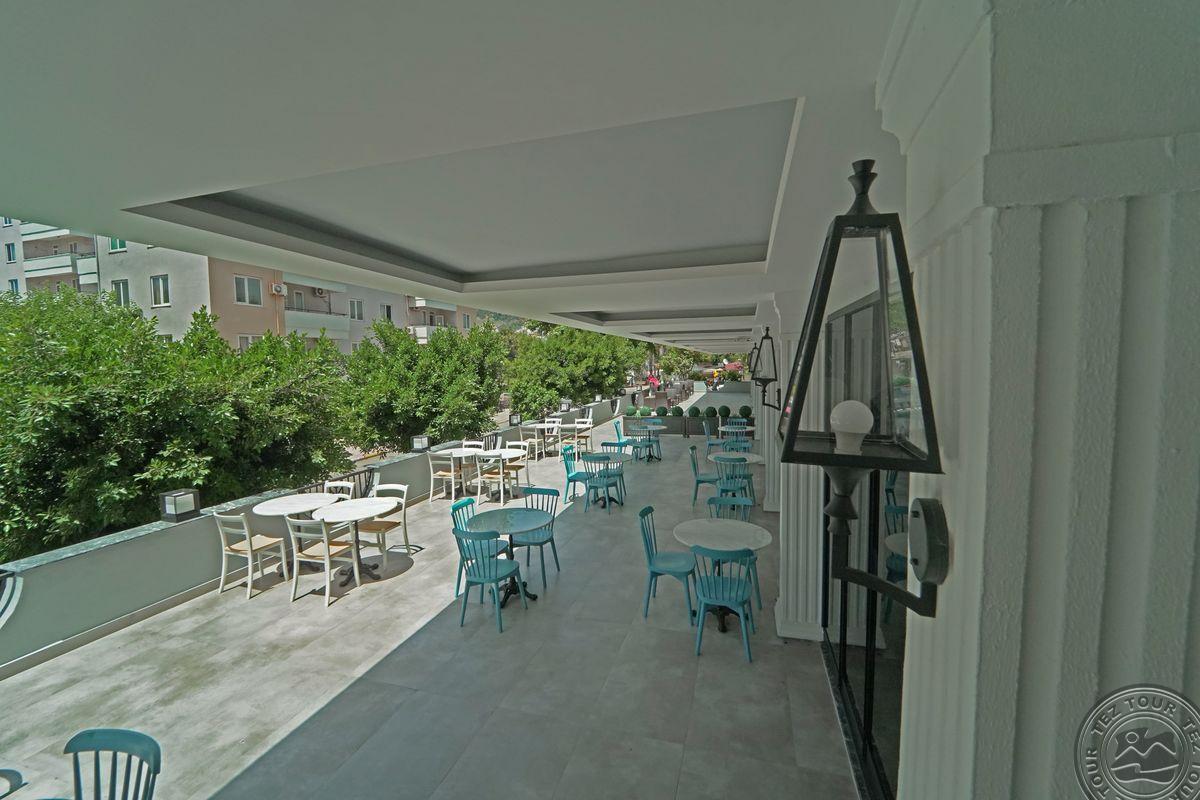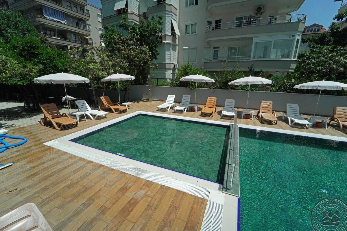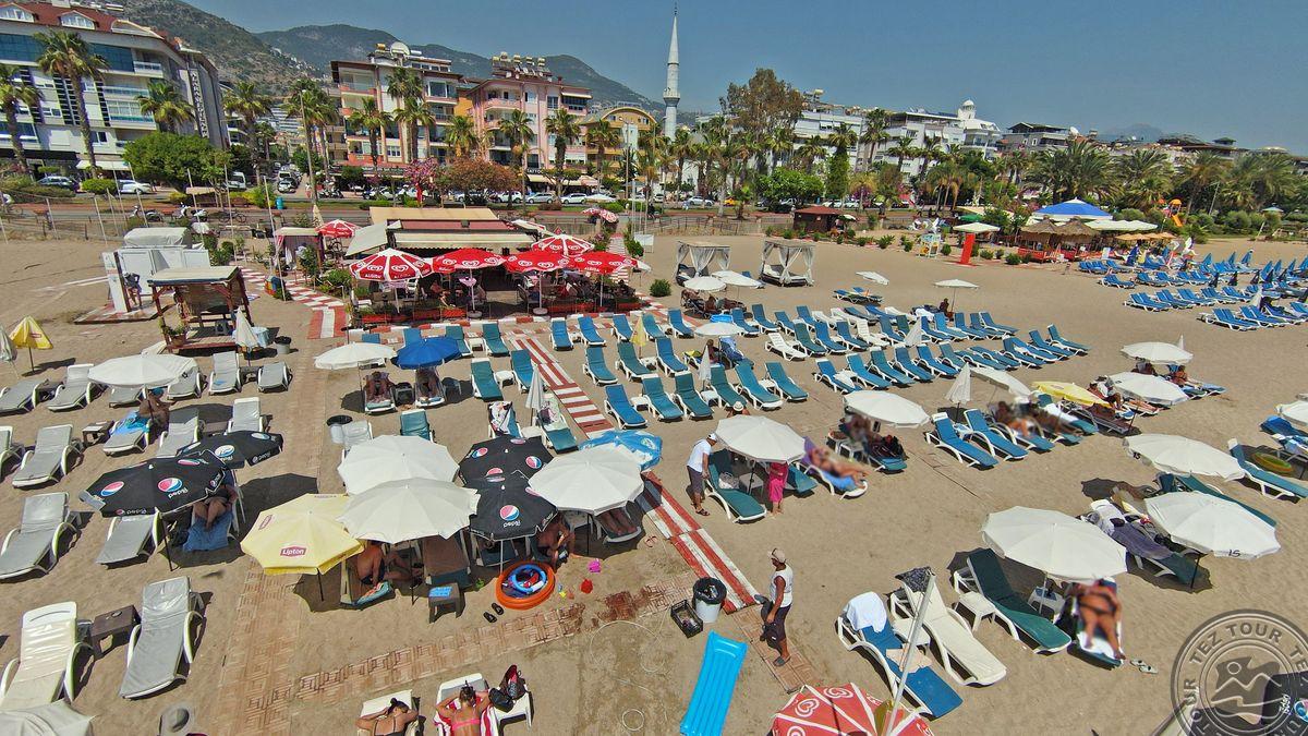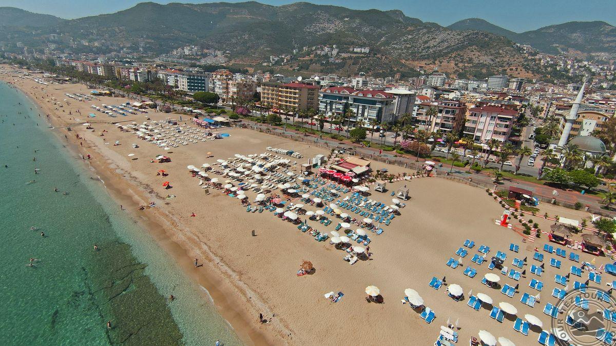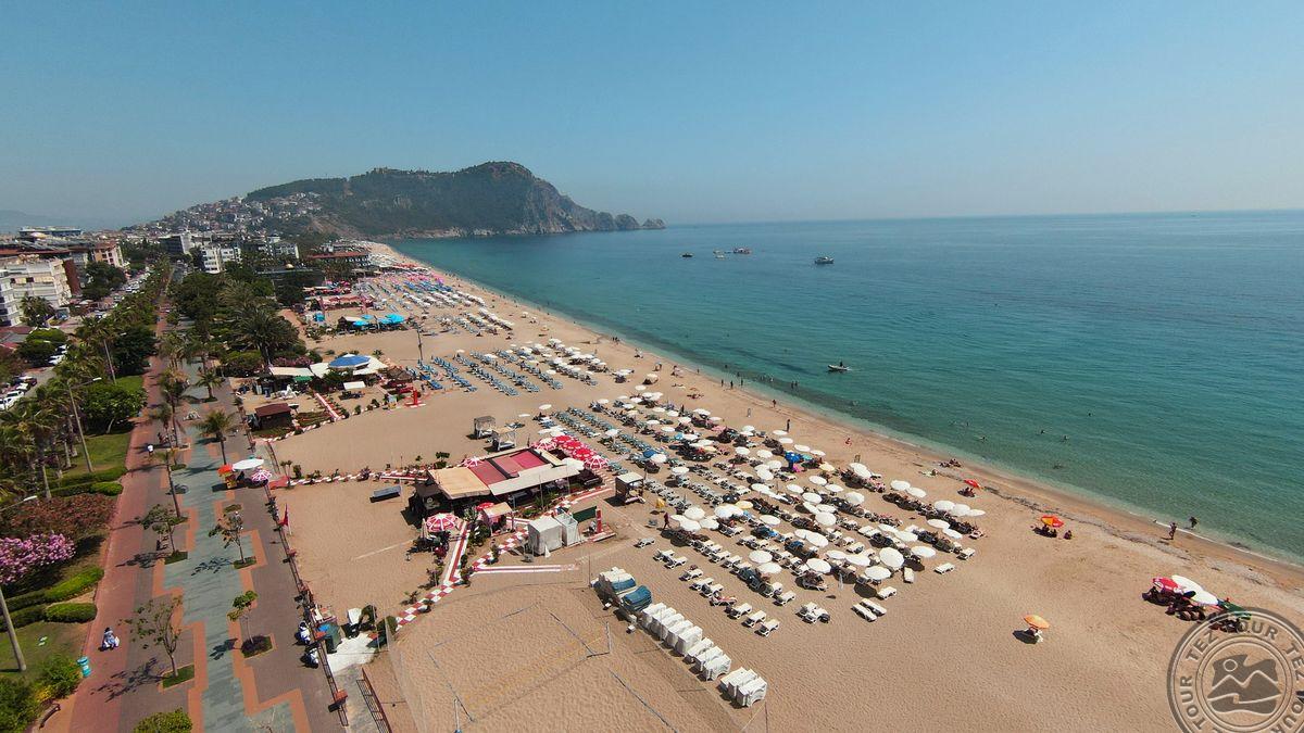в 120 км от аэропорта г. Анталья, в 1 км от центра Алании, в 100 м. через дорогу от собственного пляжа