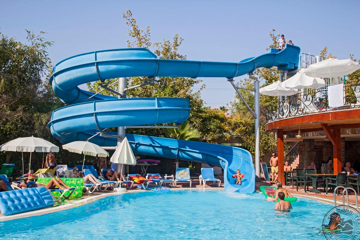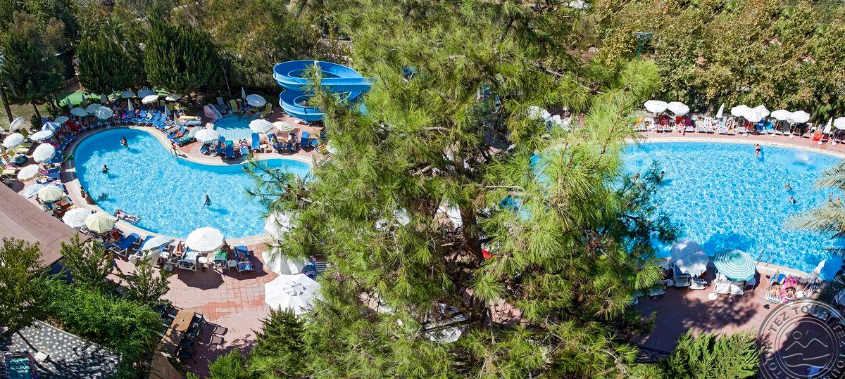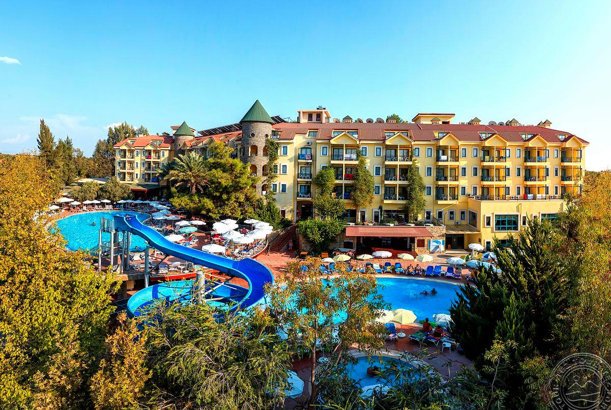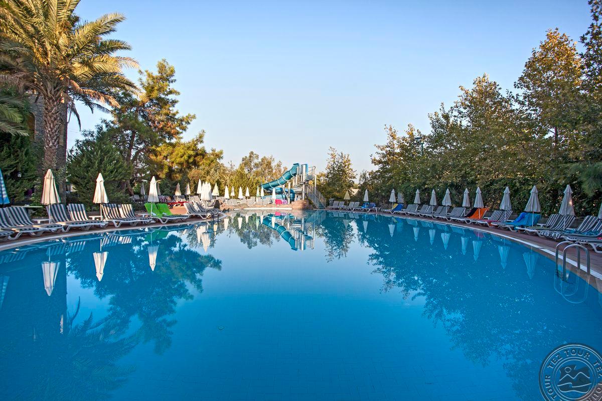 в 65 км от аэропорта г. Анталья, в 3 км от центра г. Сиде, в 700 м от собственного пляжа.