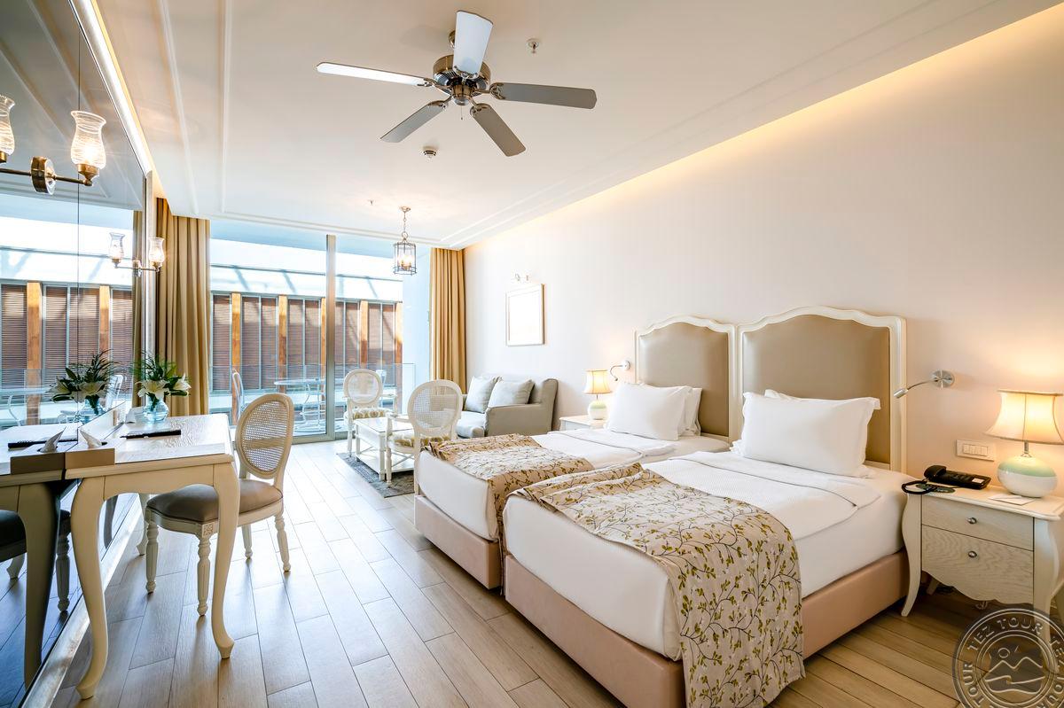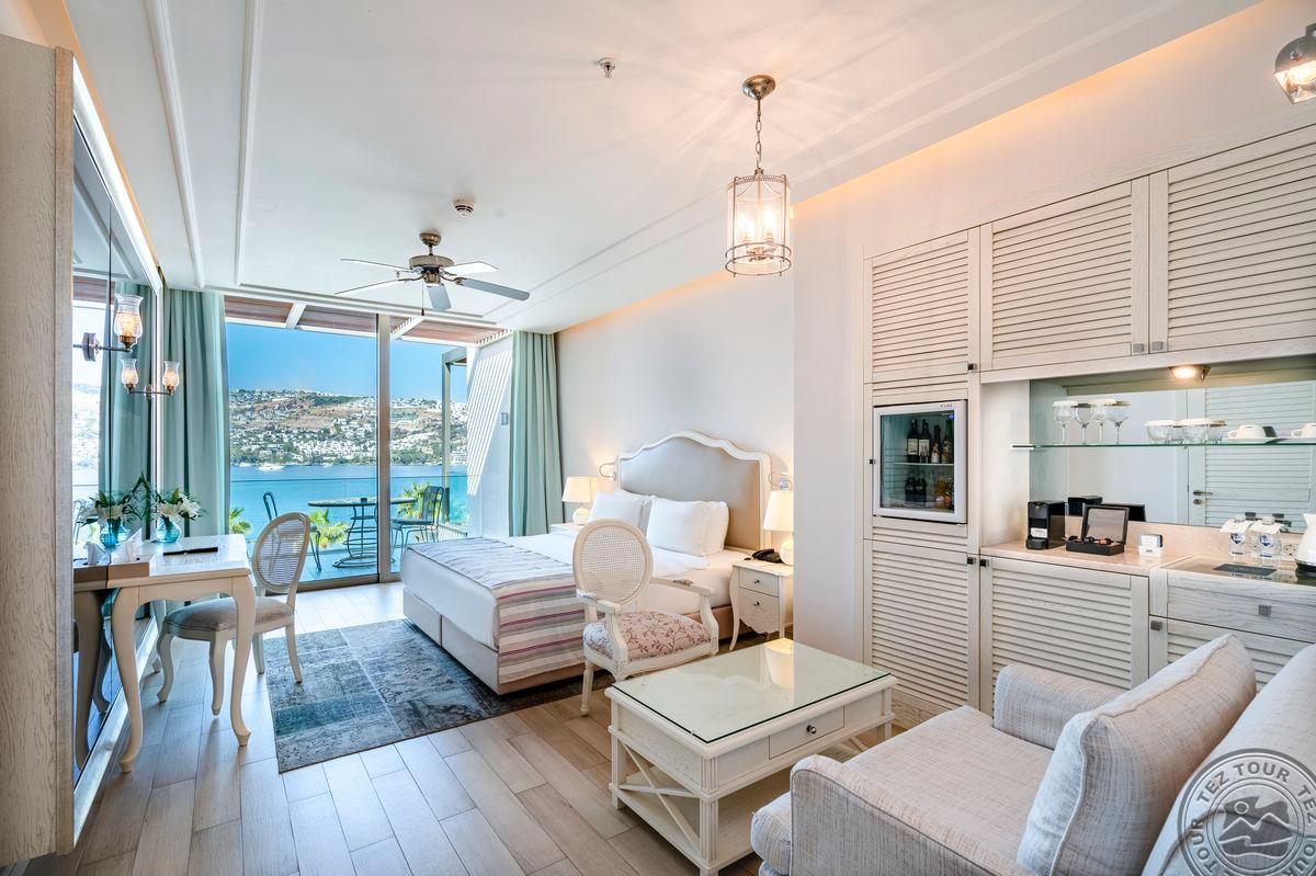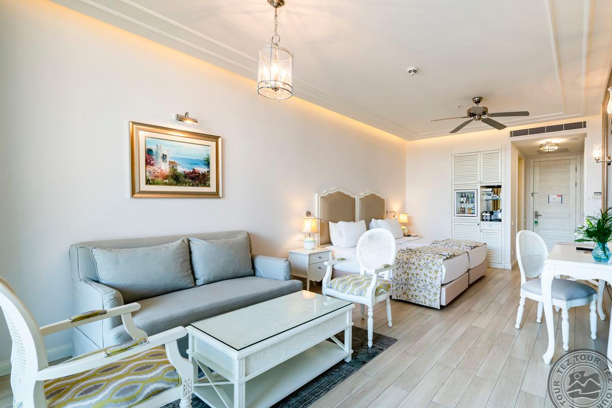 Exclusive Suite with Living Room Land View / Sea View (вид на сад или море, гостиная и спальня, двуспальная кровать, софа, 2 ванные комнаты, макс. 3+1 чел., 64 м2);