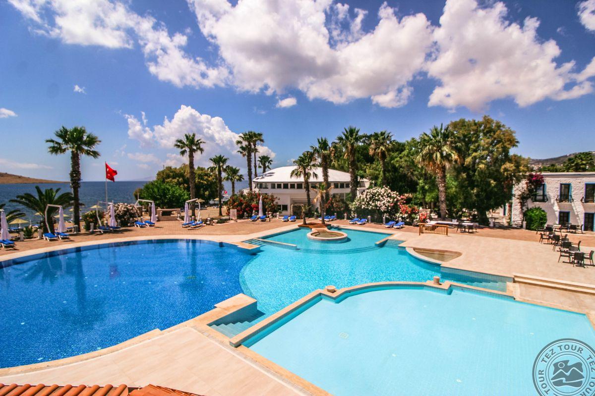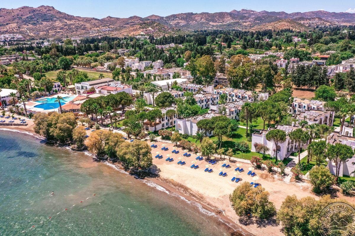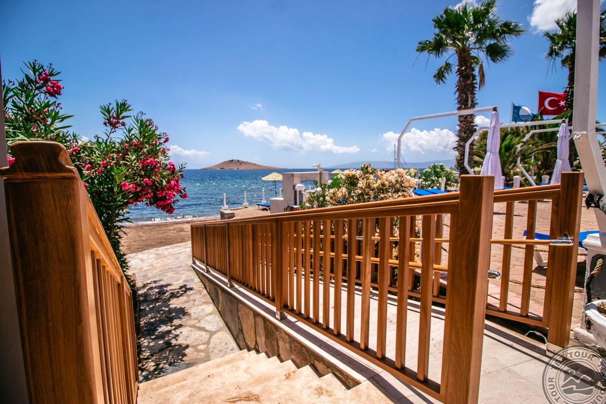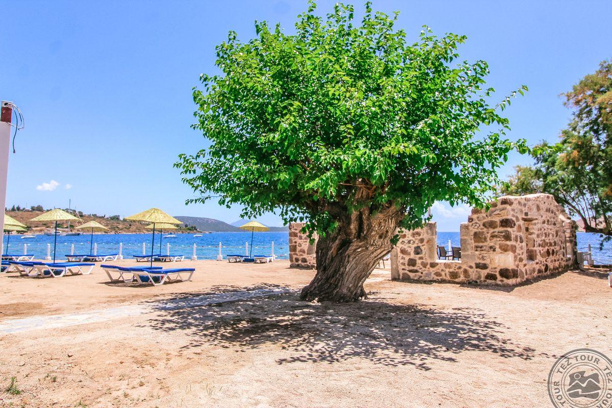 в местечке Ортакент, 10 км от центра Бодрума, в 5 км от магазинов, в 50 км от аэропорта Бодрума, на берегу моря.
