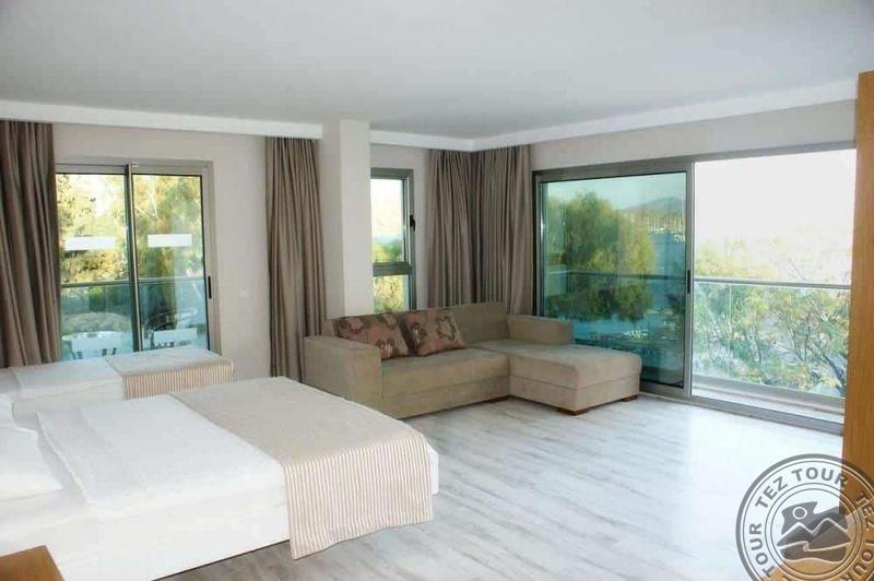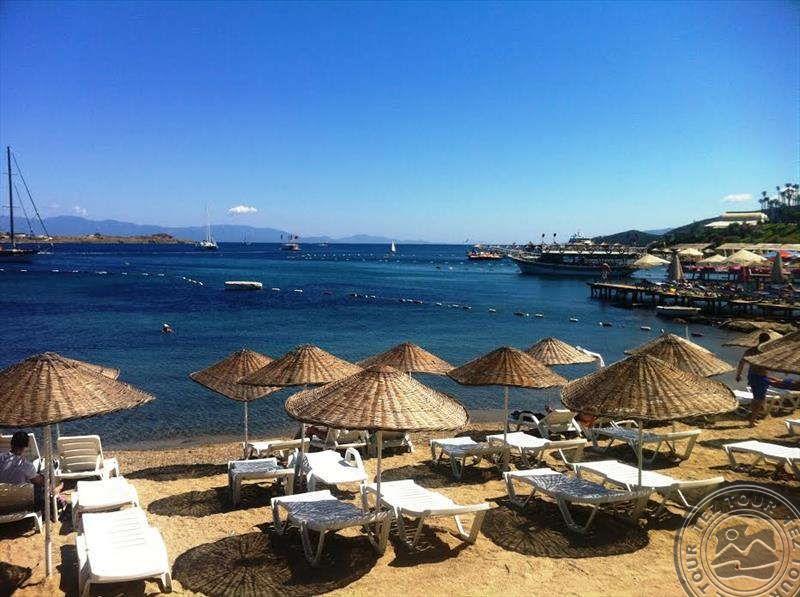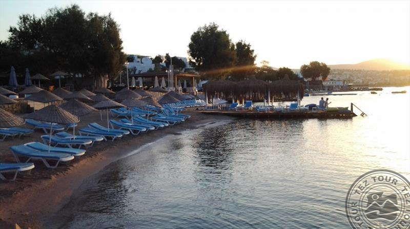 в Гюмбете, в 3 км от центра Бодрума, в 35 км от аэропорта Бодрума, на берегу моря.