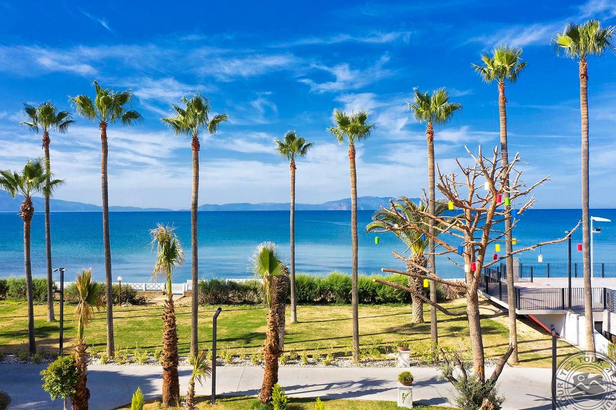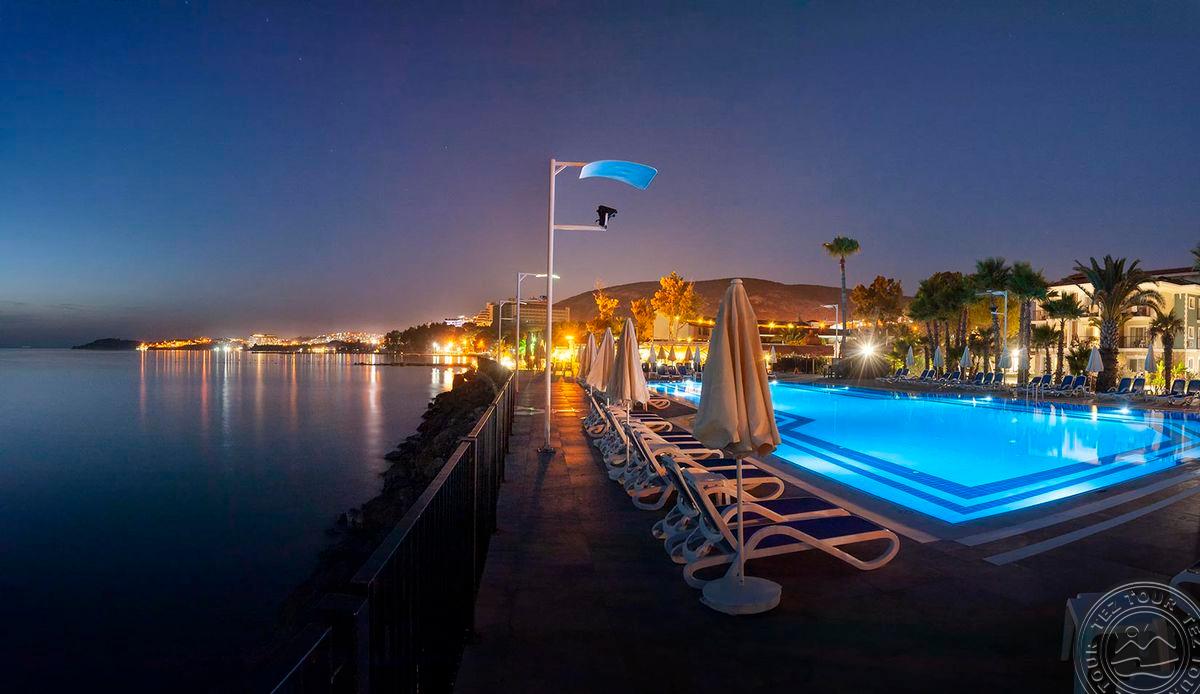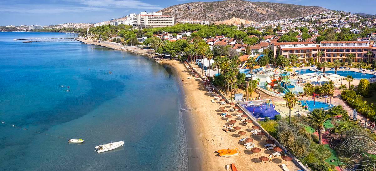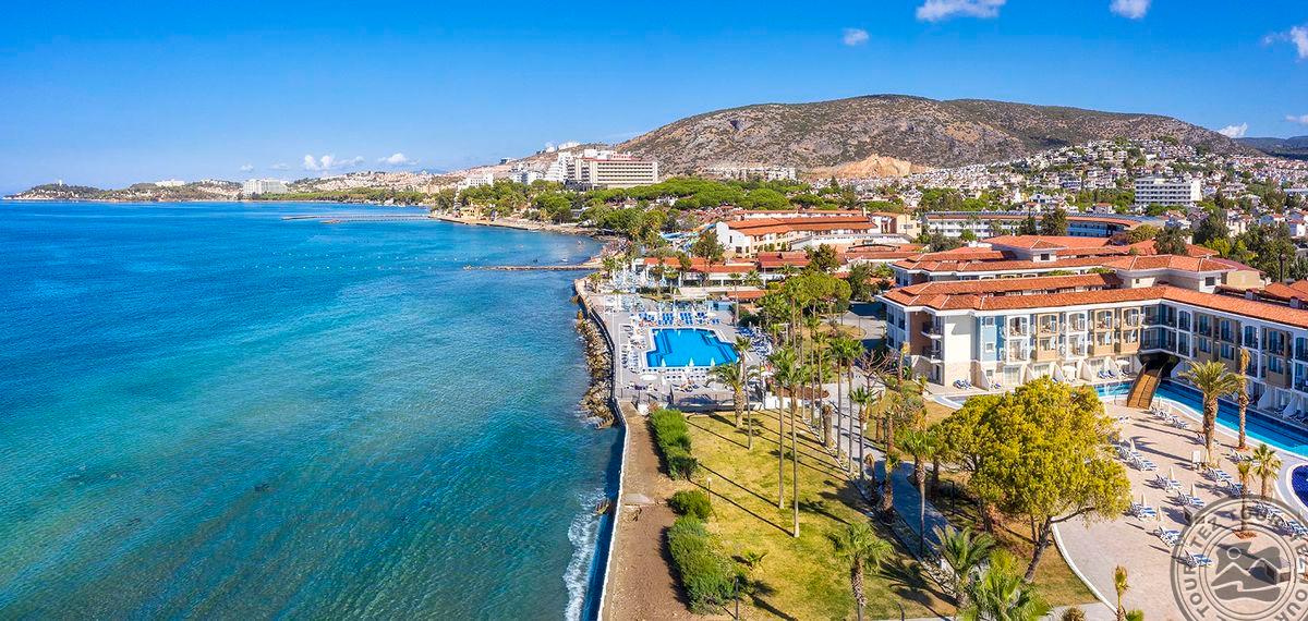 в 70 км от аэропорта г. Измир, в 7 км от центра г. Кушадасы, на берегу моря. До античного города Эфес 19 км.