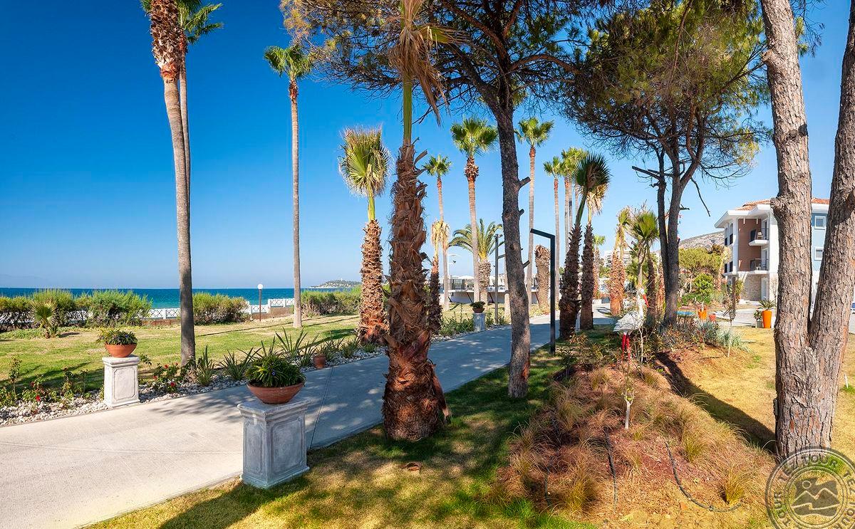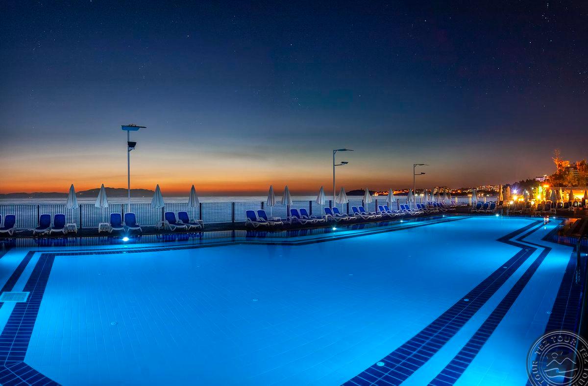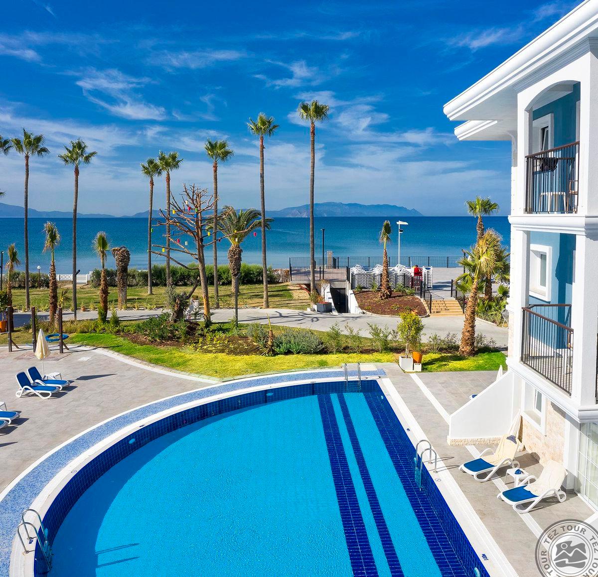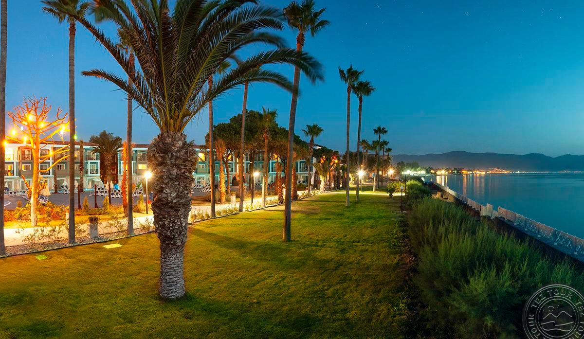 в 70 км от аэропорта г. Измир, в 7 км от центра г. Кушадасы, на берегу моря. До античного города Эфес 19 км.