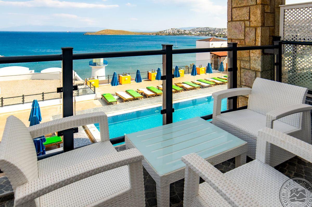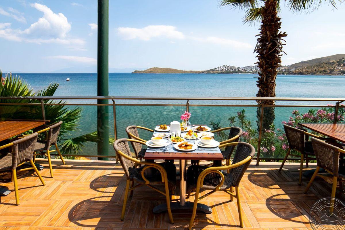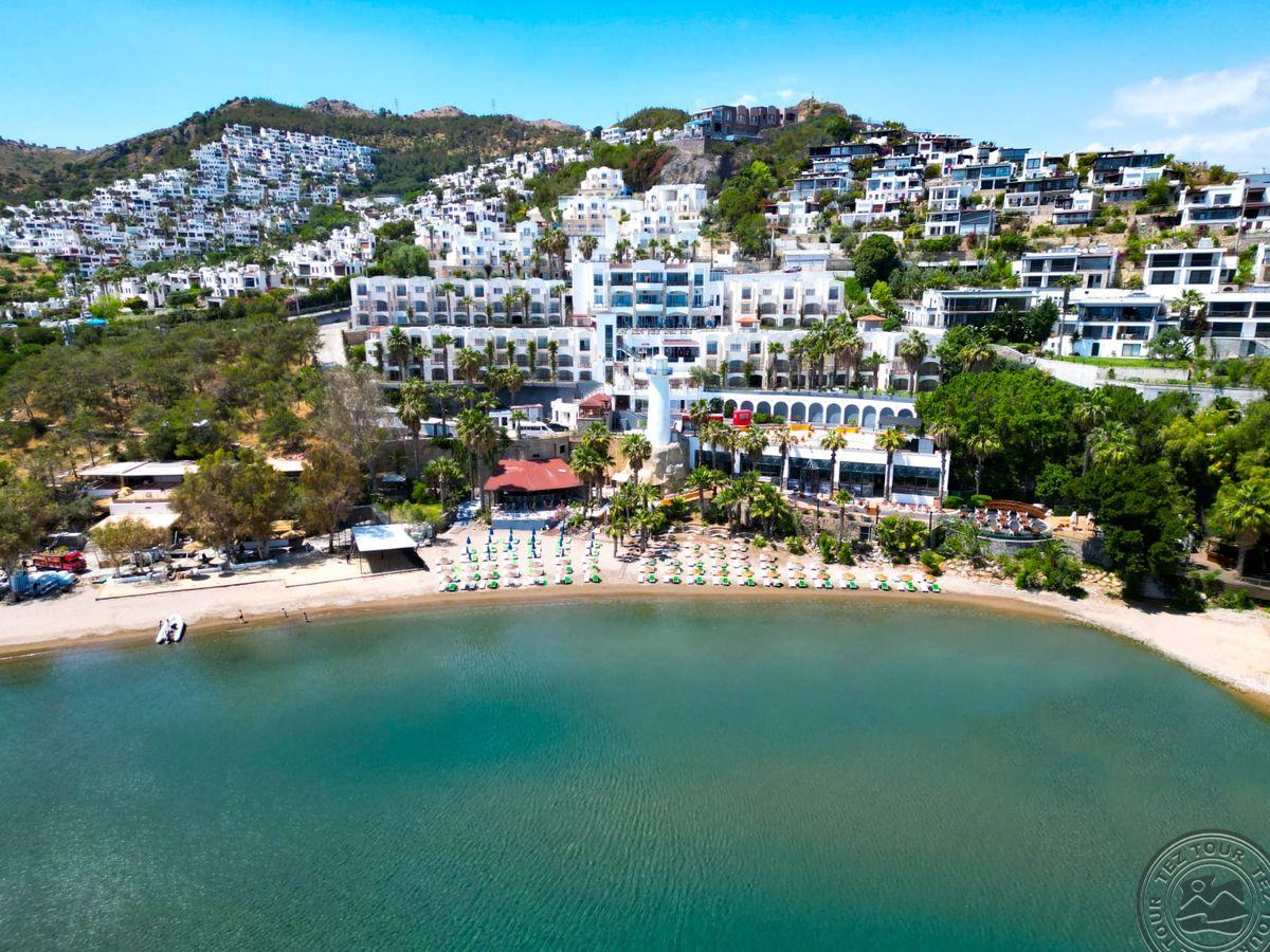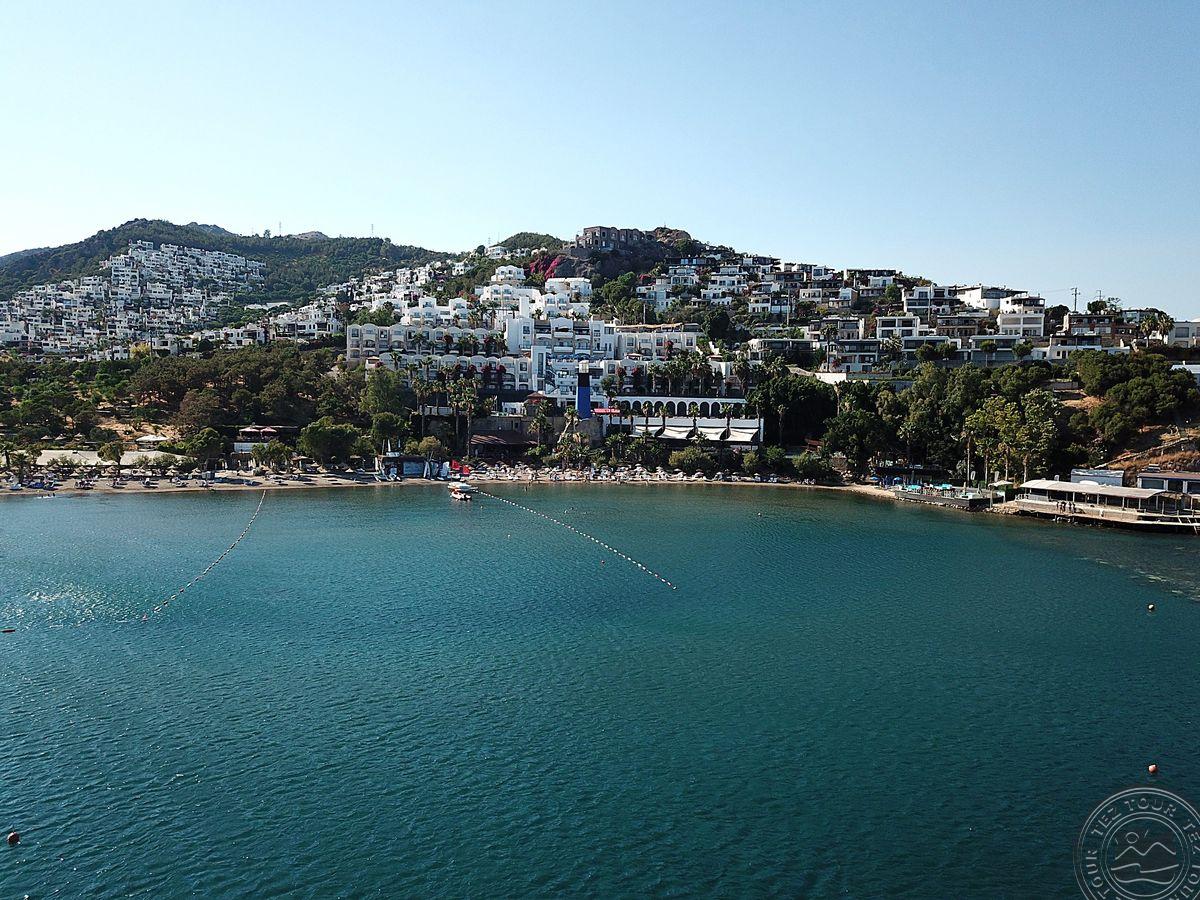 в 16 км от центра Бодрума, в 45 км от аэропорта Бодрума, на берегу моря.