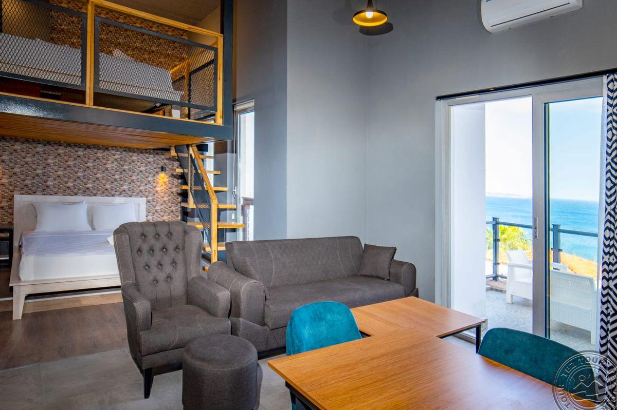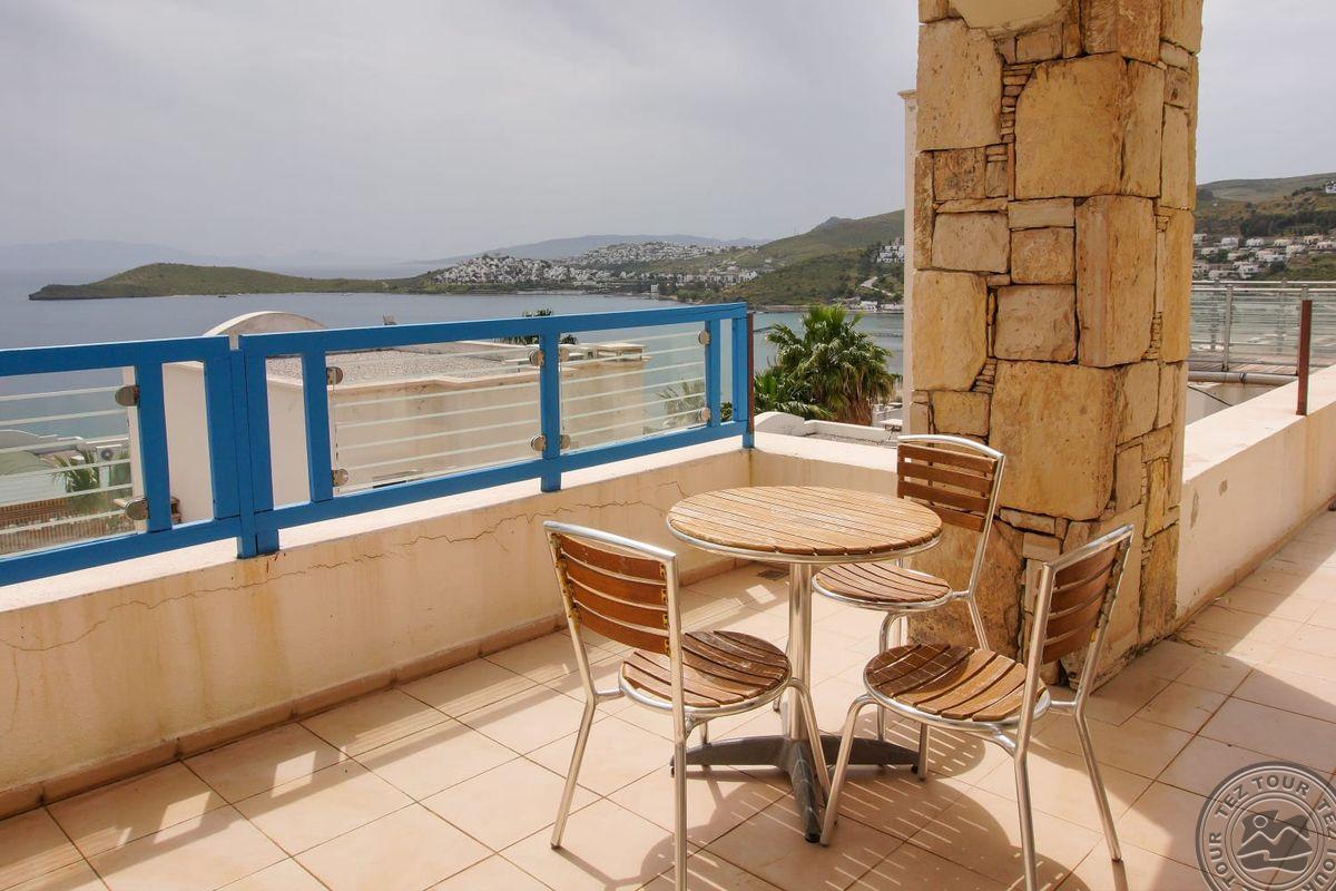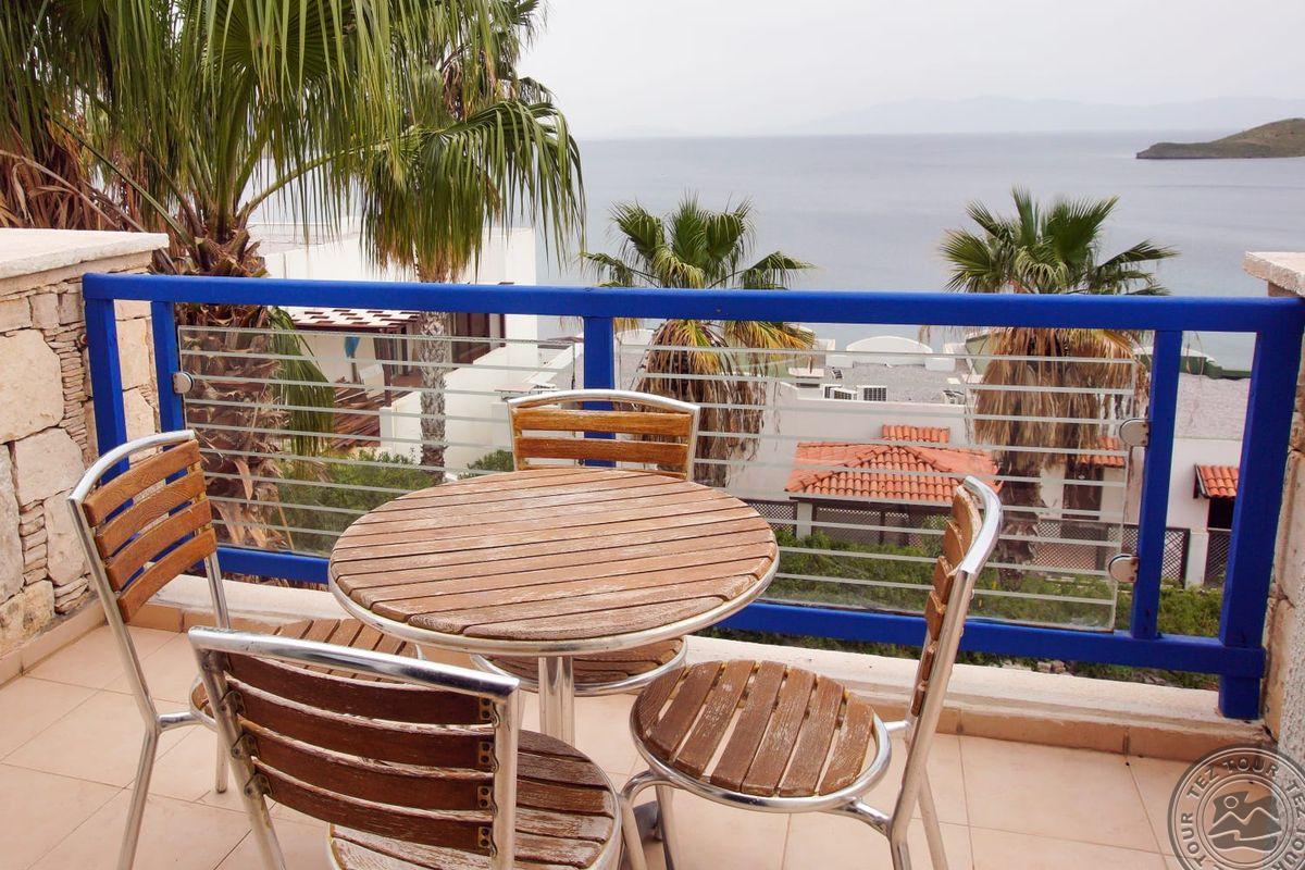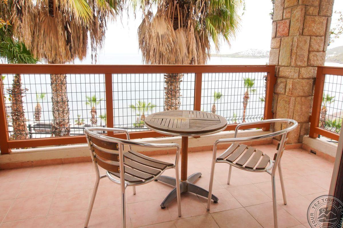 в 16 км от центра Бодрума, в 45 км от аэропорта Бодрума, на берегу моря.