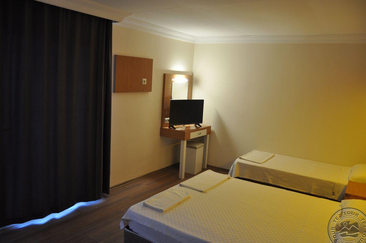 5 large room(макс. 4 чел, 28 м2).Месторасположение Отель ANITA SUNPARK HOTEL 4 *: в 35 км. от аэропорта г. Анталья, в 25 км. от г. Кемер, в поселке Бельдиби, в 100 м. от собственного пляжа.