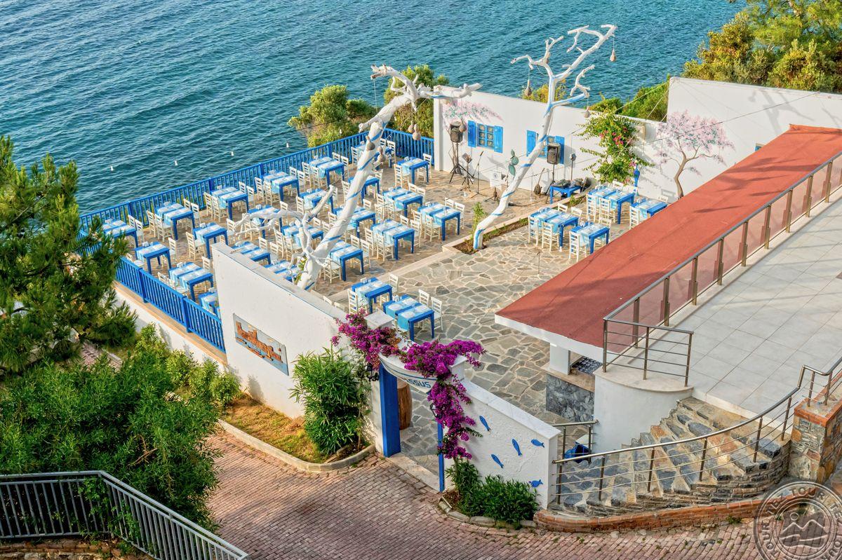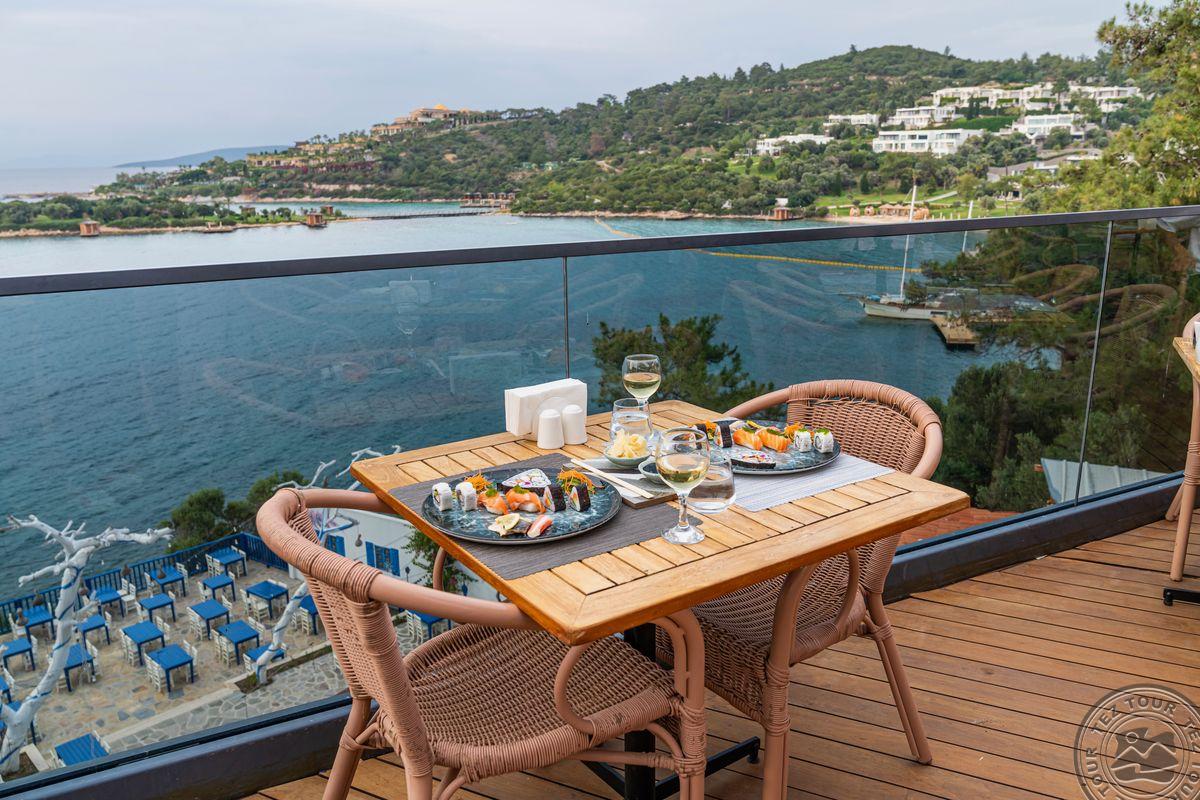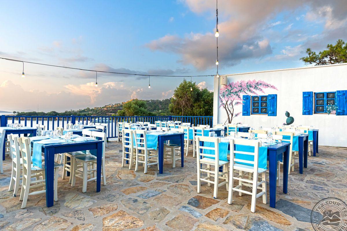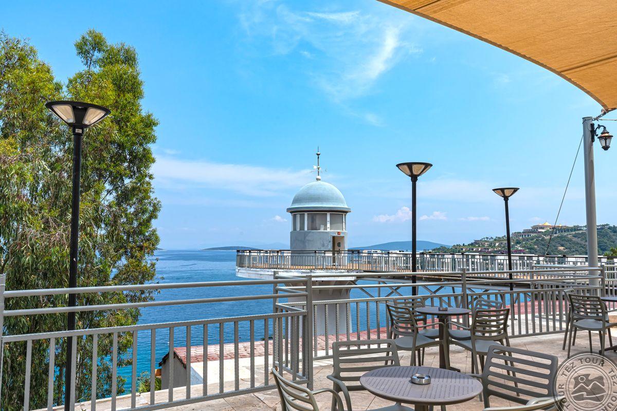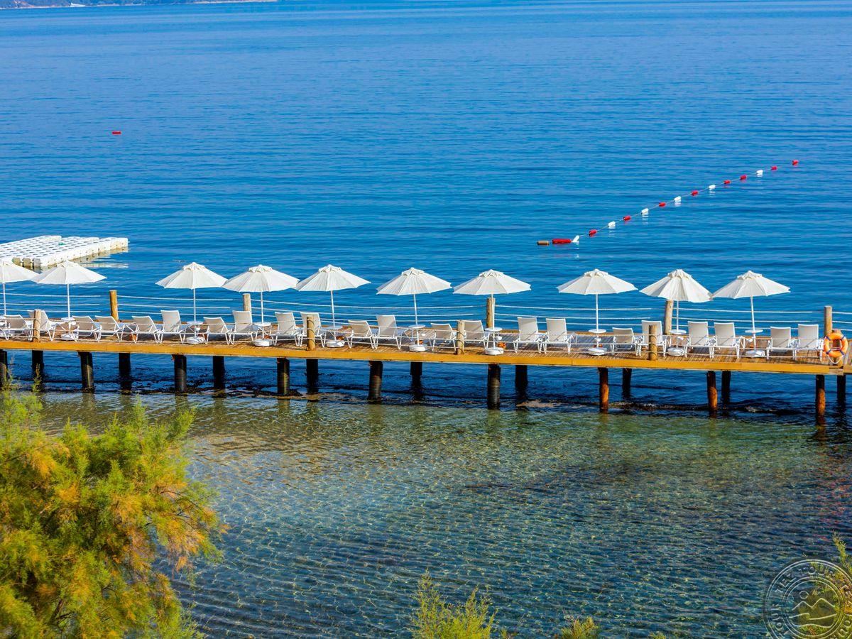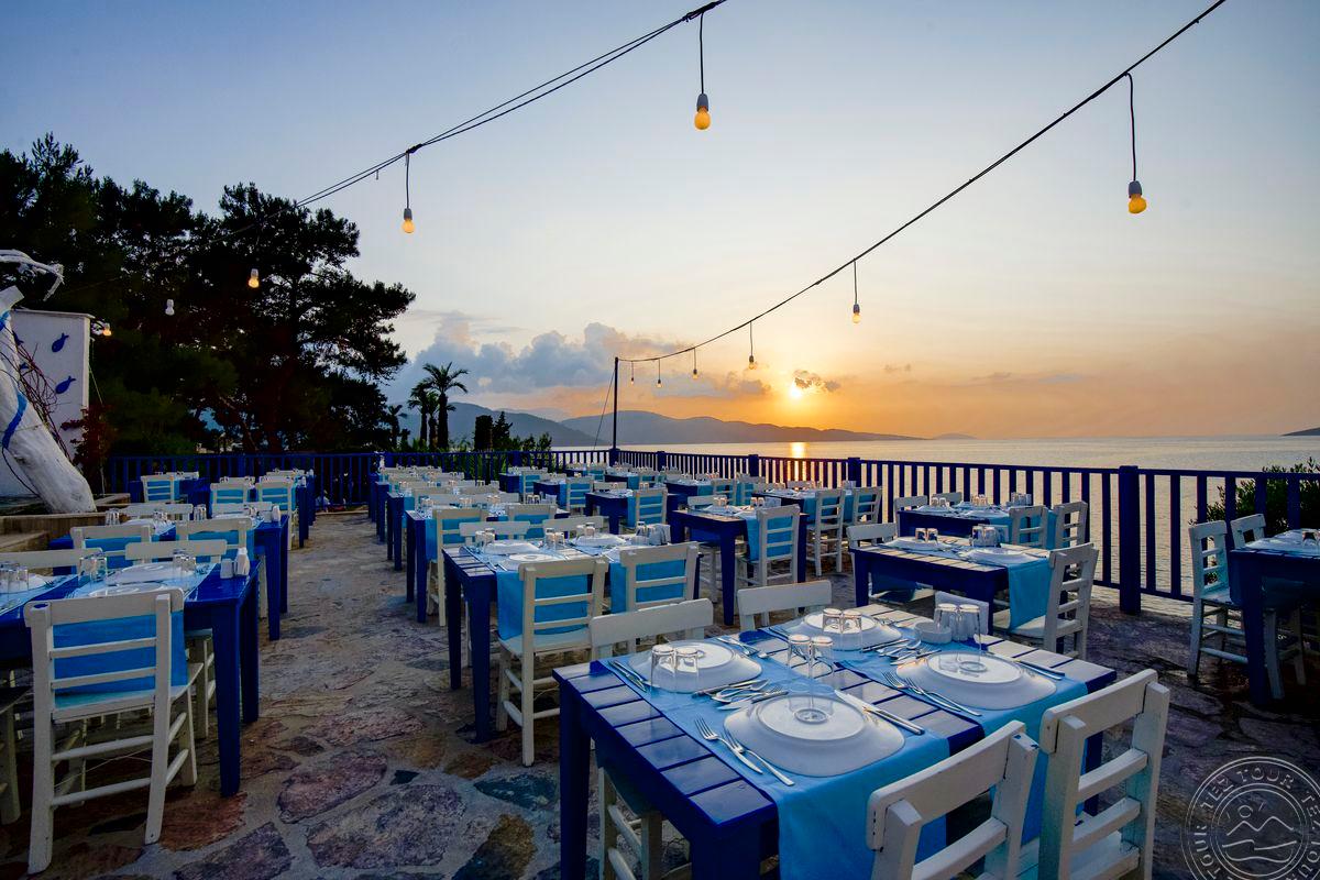 в 4 км от поселка Торба, в 13 км от Бодрума, в 24 км от аэропорта Бодрума, на берегу моря.