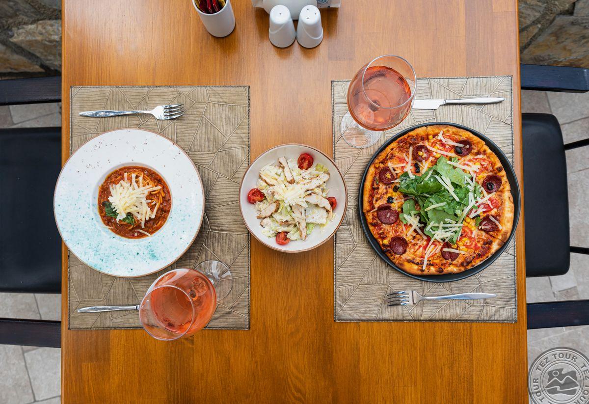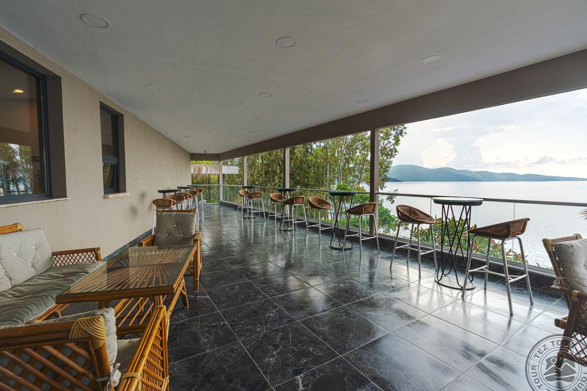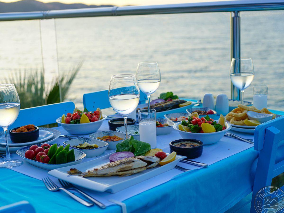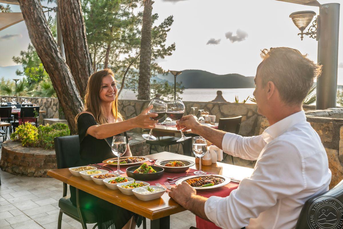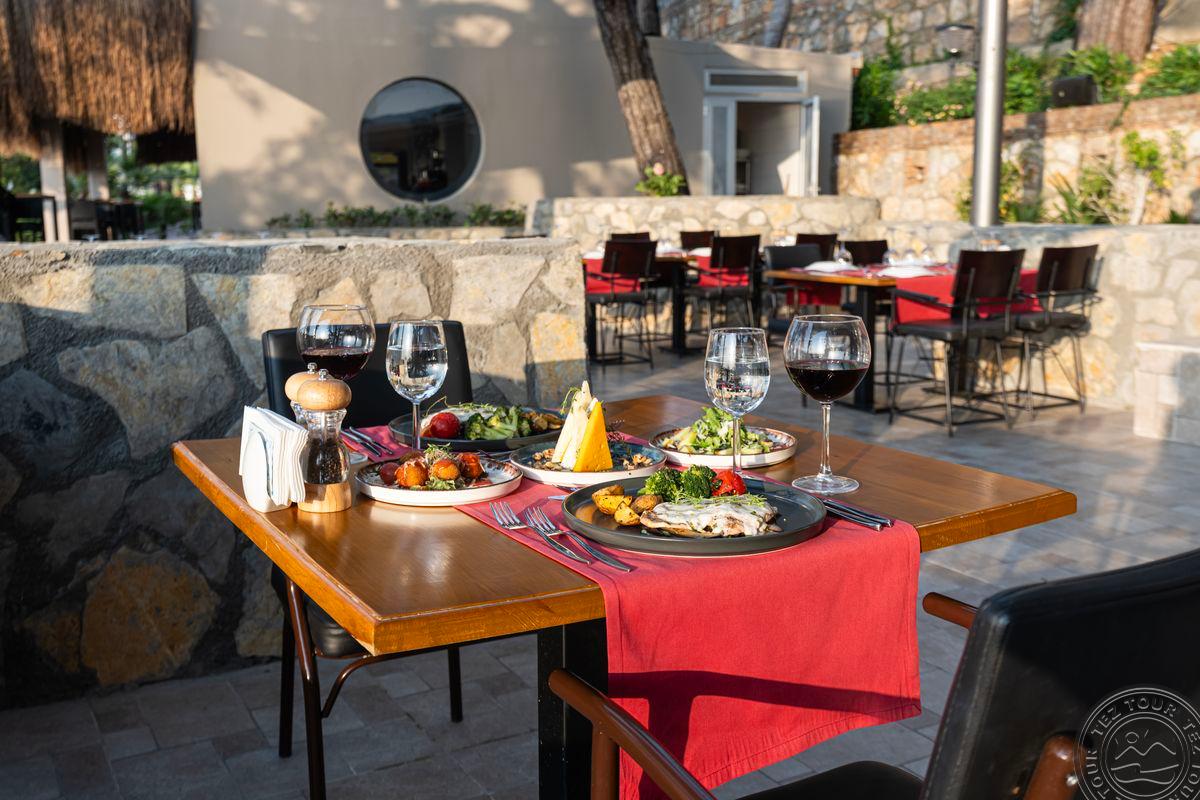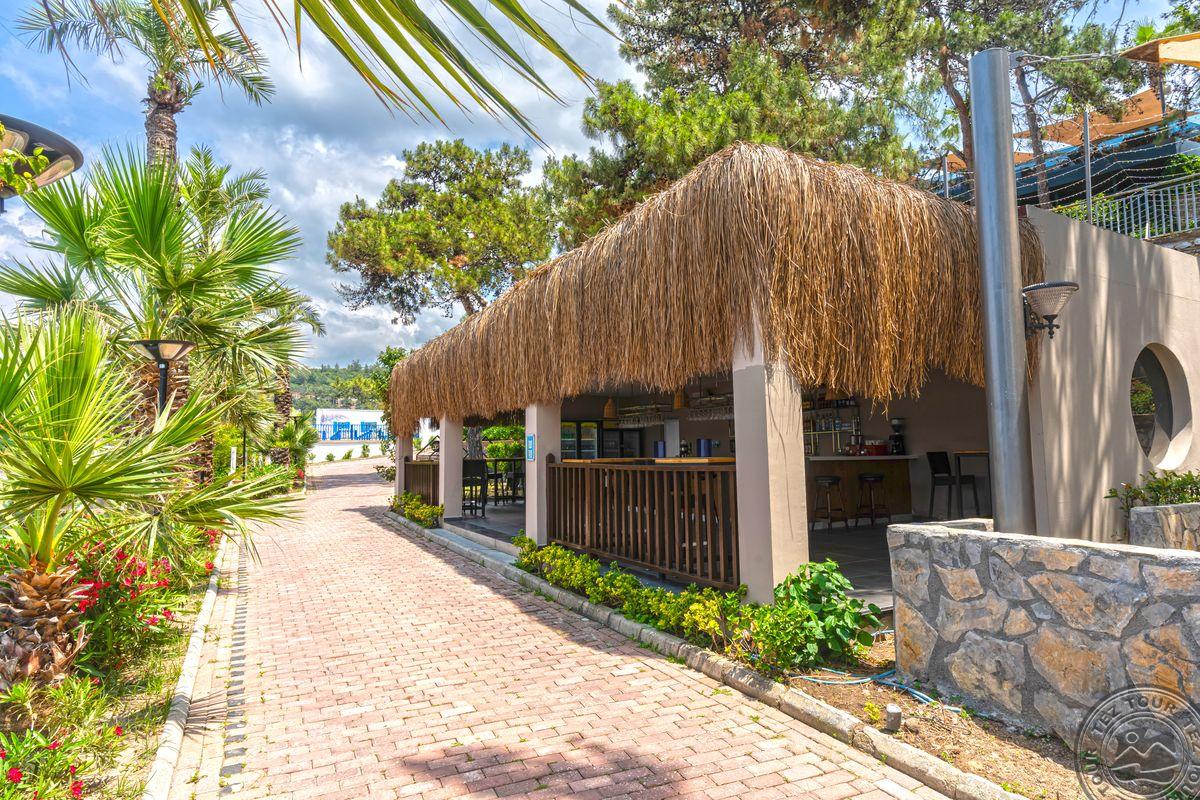 в 4 км от поселка Торба, в 13 км от Бодрума, в 24 км от аэропорта Бодрума, на берегу моря.