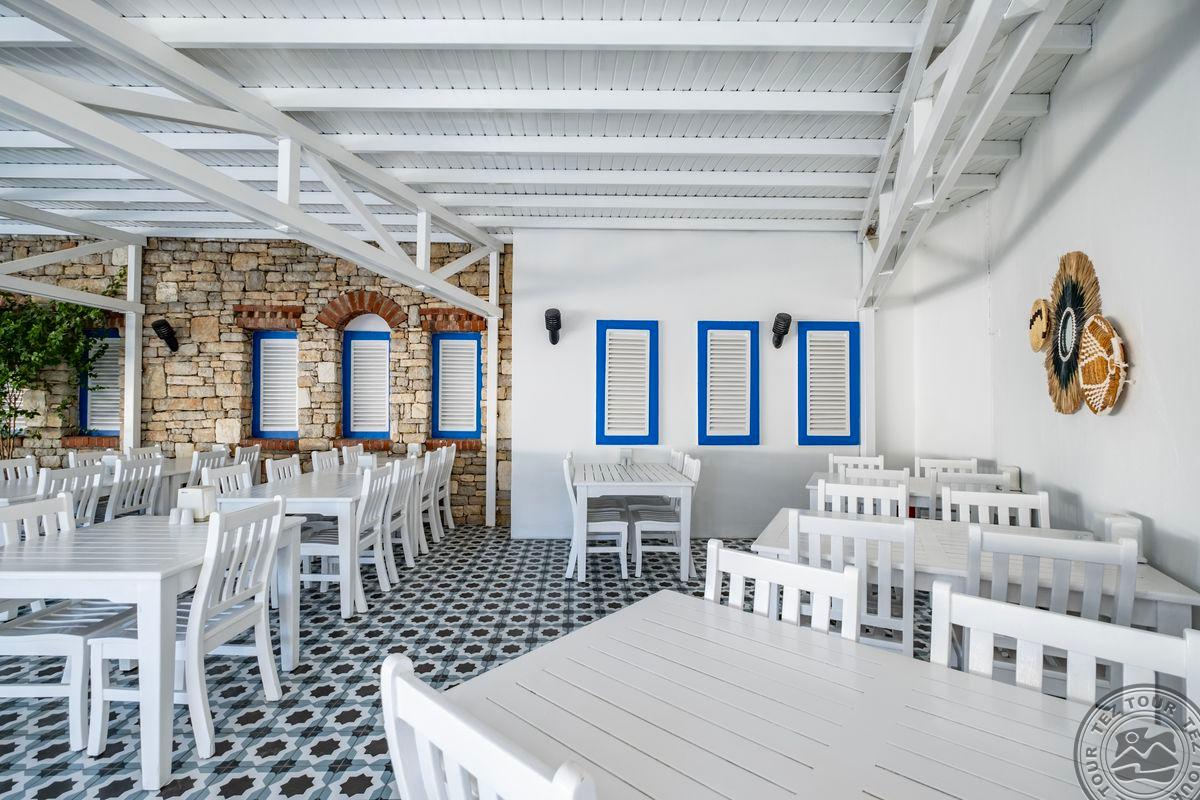 Расположен посреди зеленой мандариновой рощи всего в пяти минутах от берега залива Битез, известного как рай для виндсерфинга.
