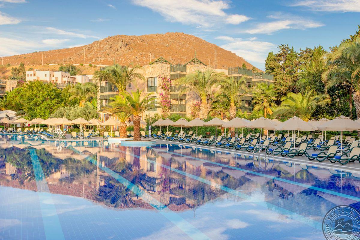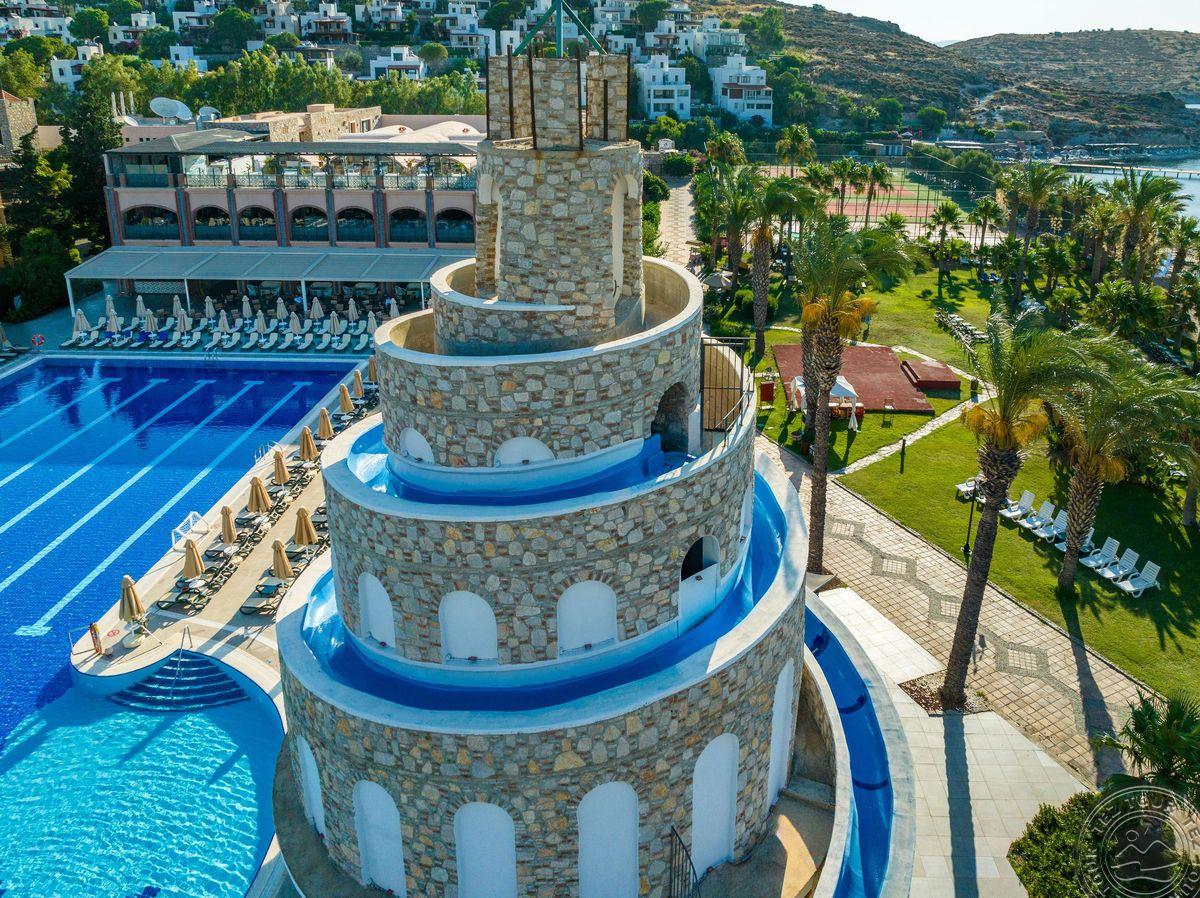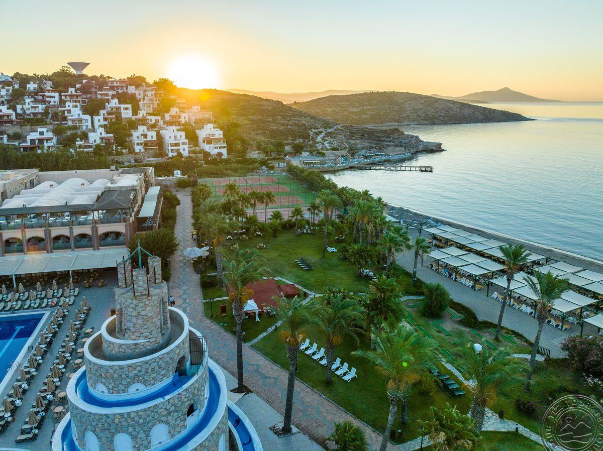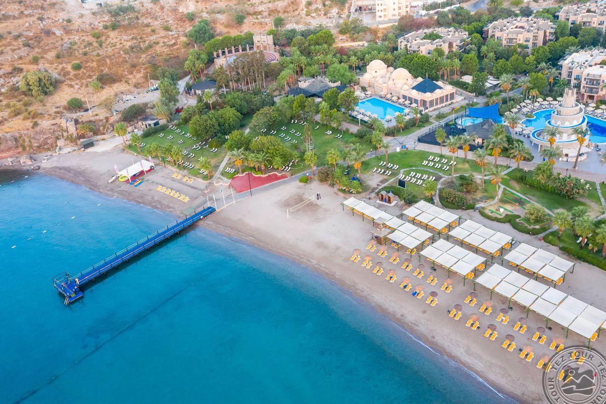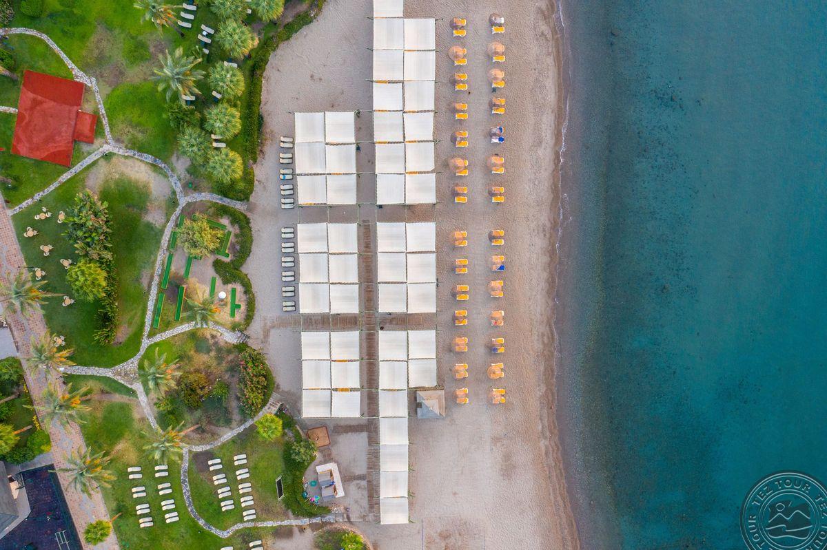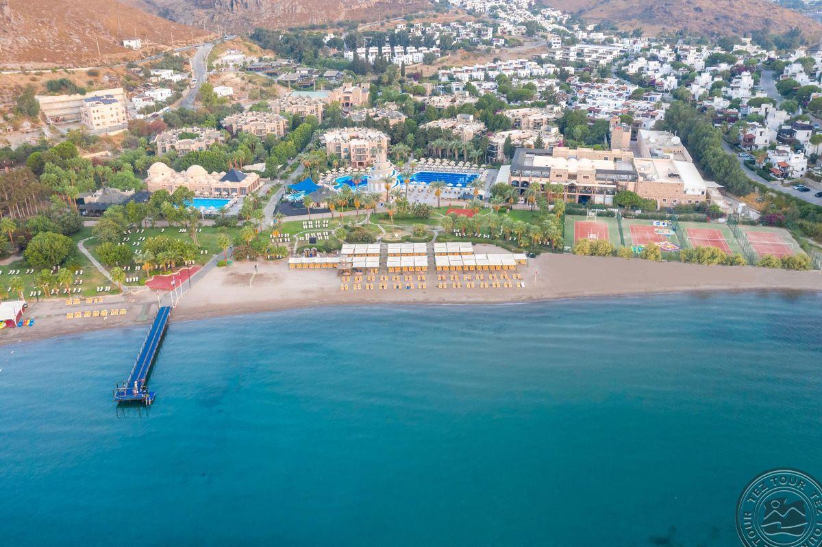 Отель расположен на одном из самых красивых пляжей с мелким песком в Бодруме. Ухоженные сады и большие территории. Один из самых красивых закатов в Бодруме.
