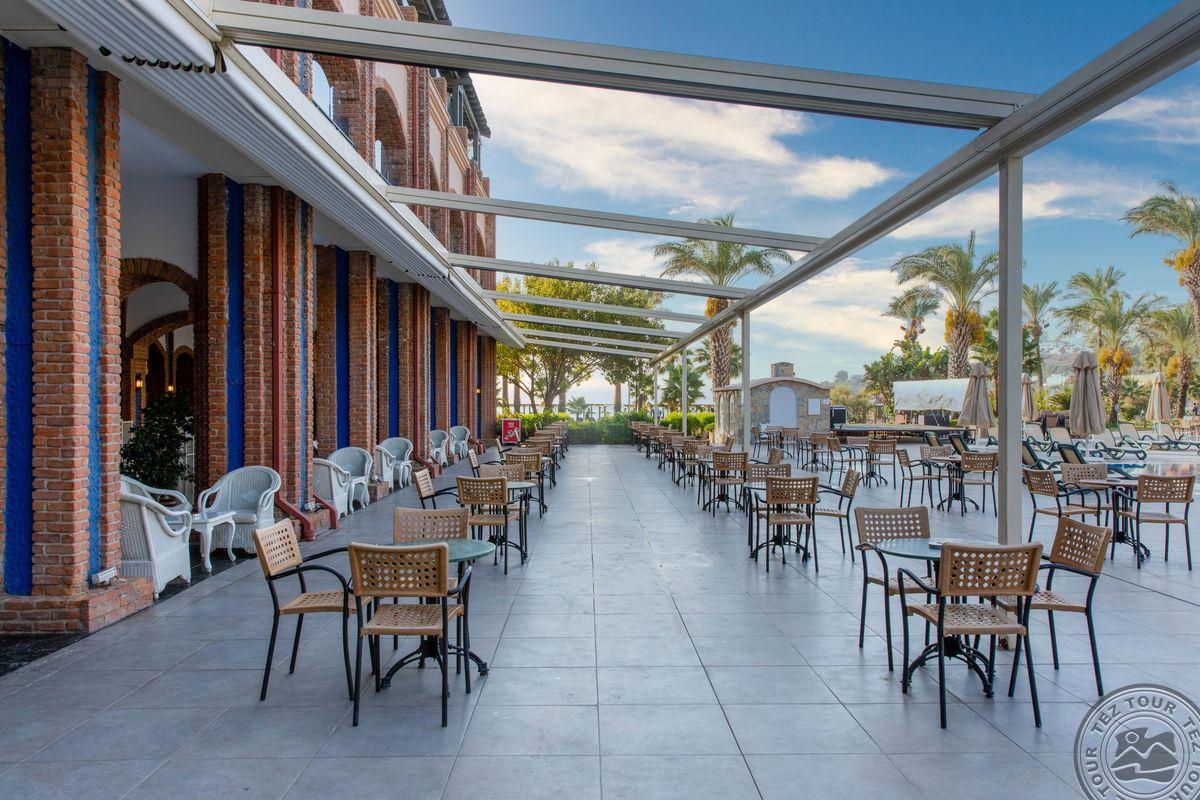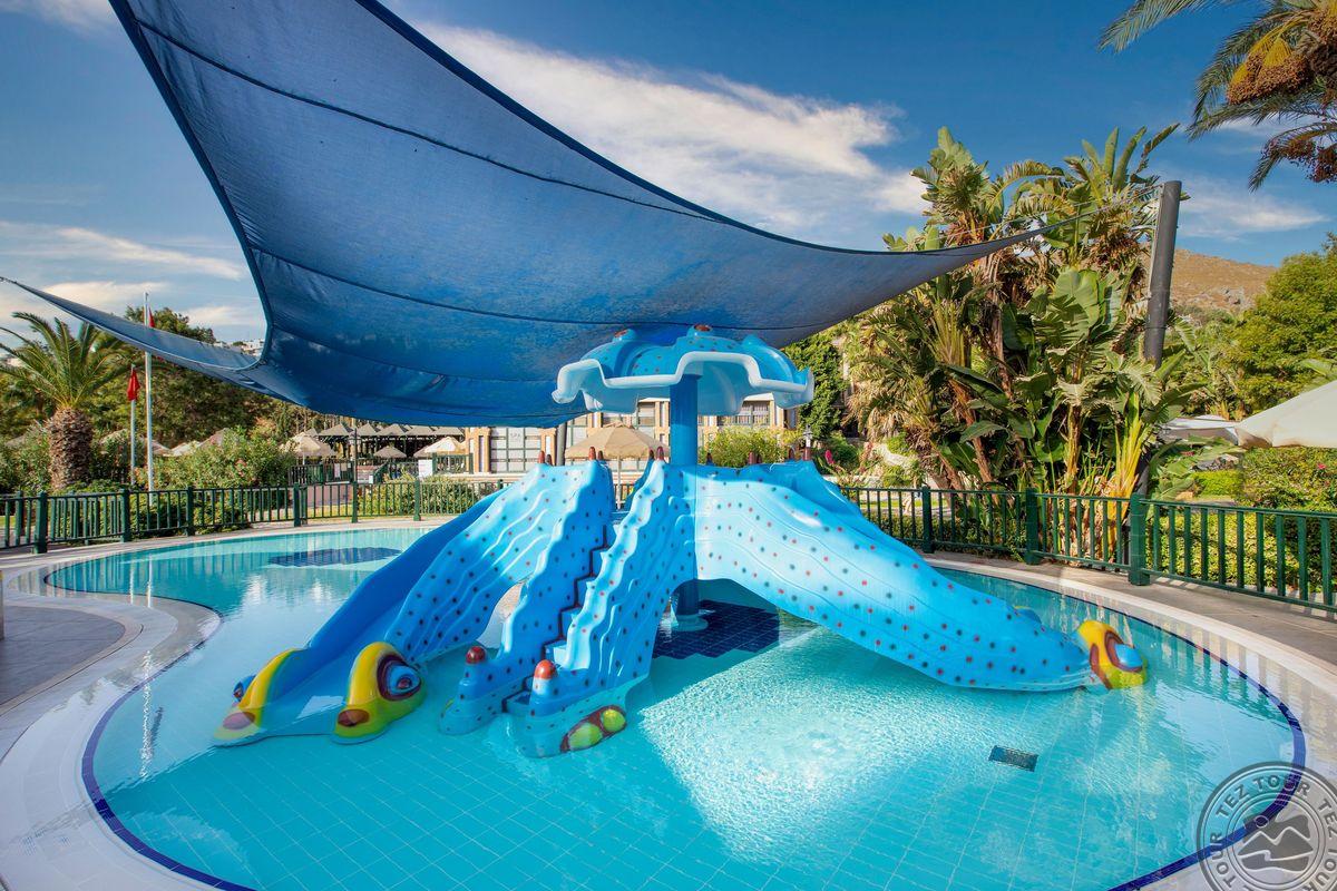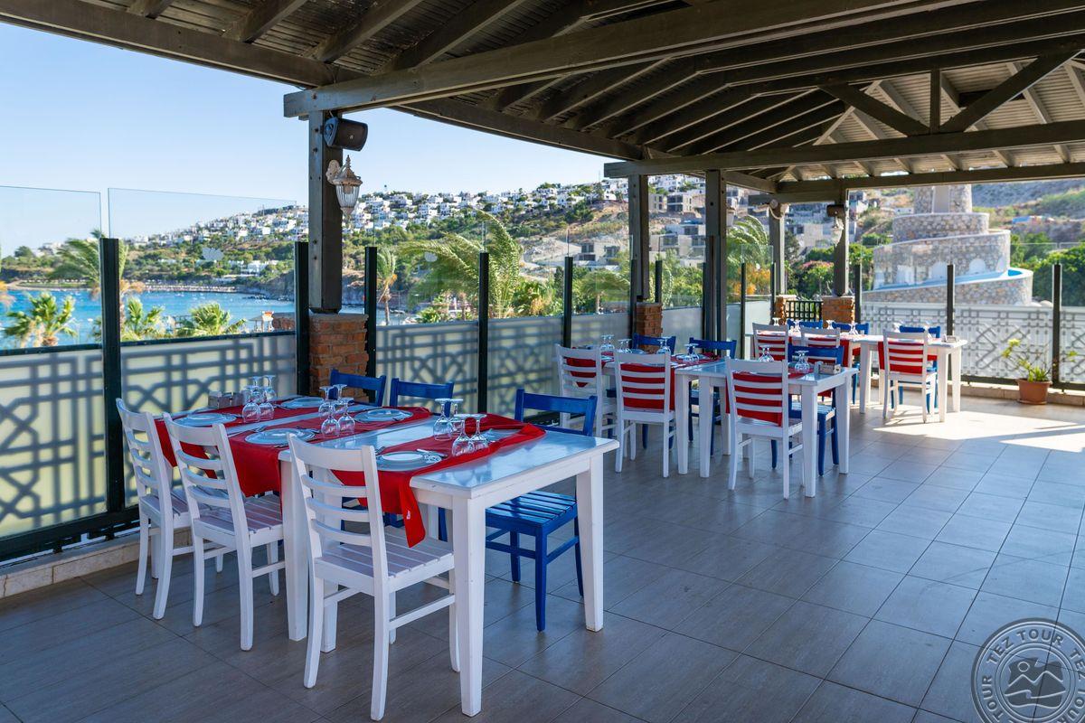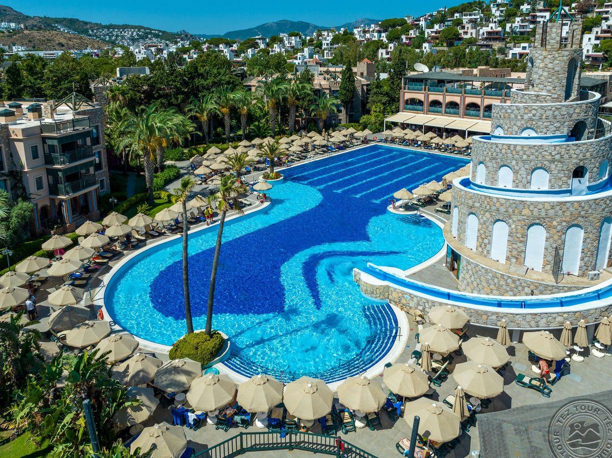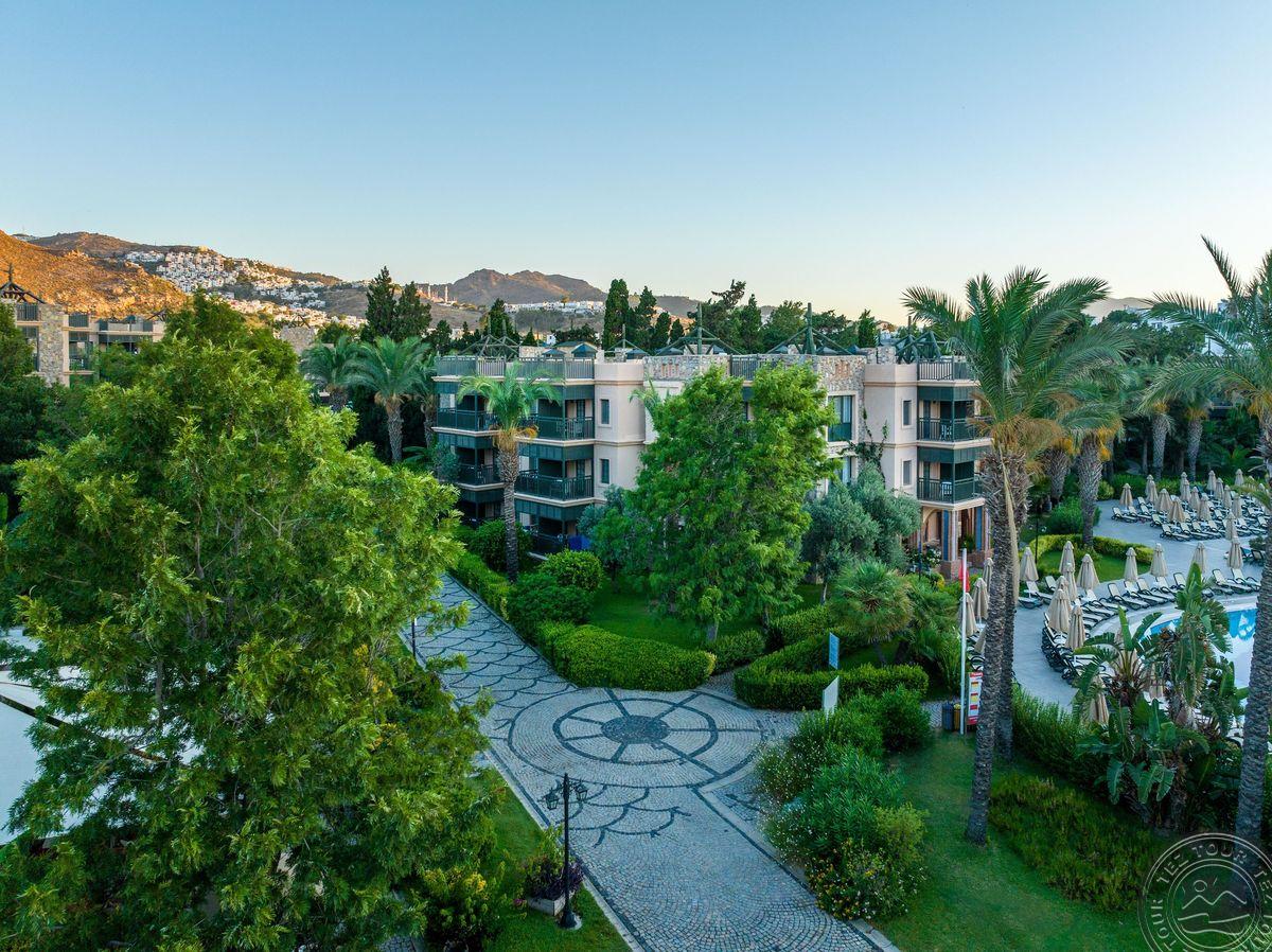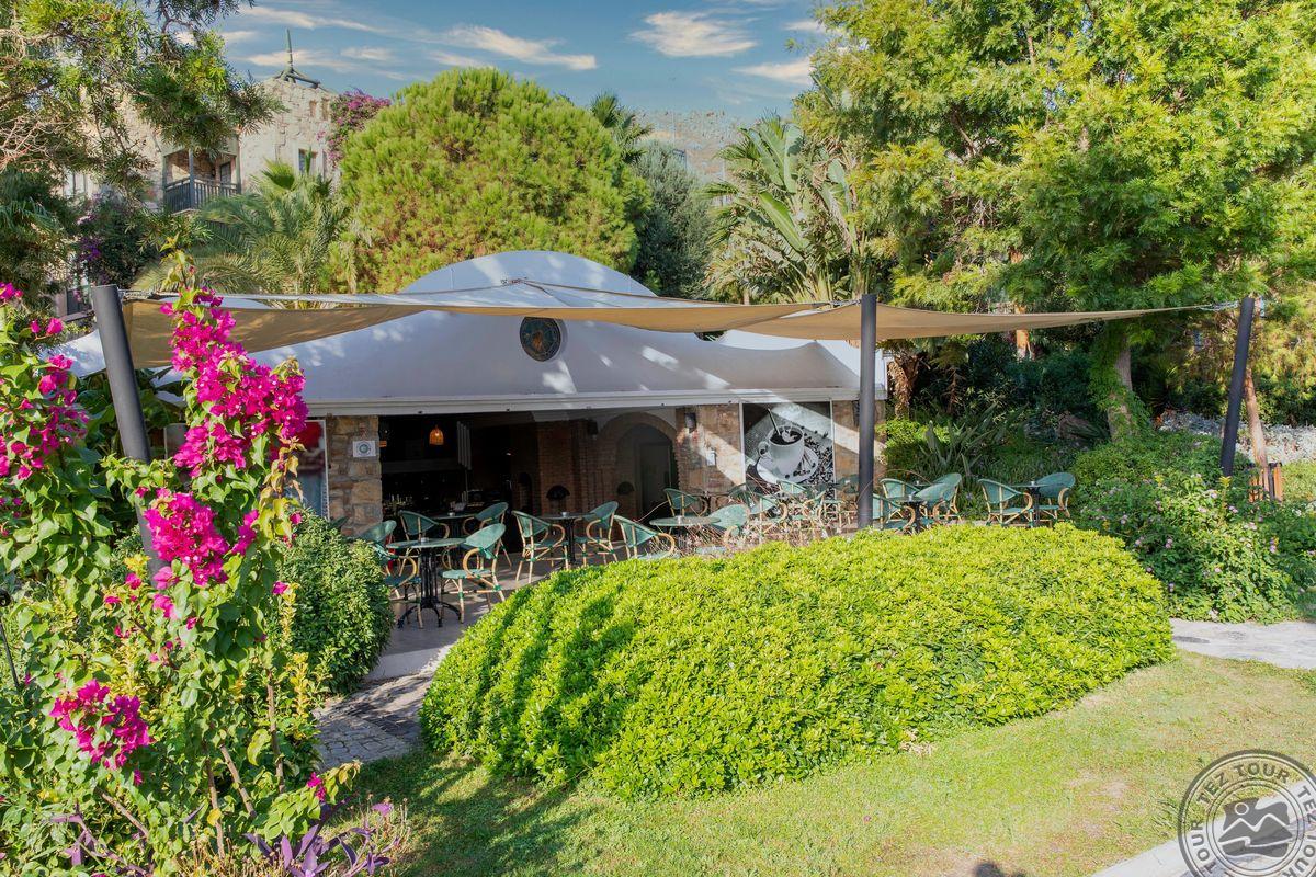 Отель расположен на одном из самых красивых пляжей с мелким песком в Бодруме. Ухоженные сады и большие территории. Один из самых красивых закатов в Бодруме.
