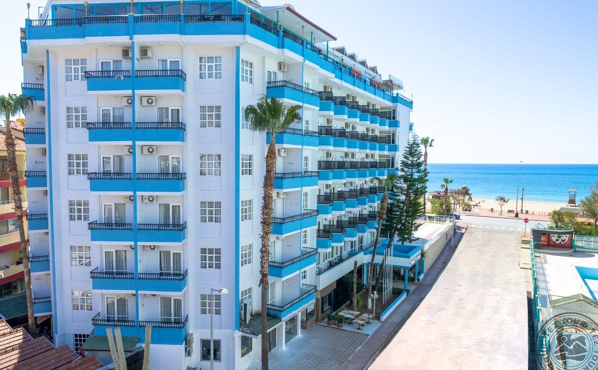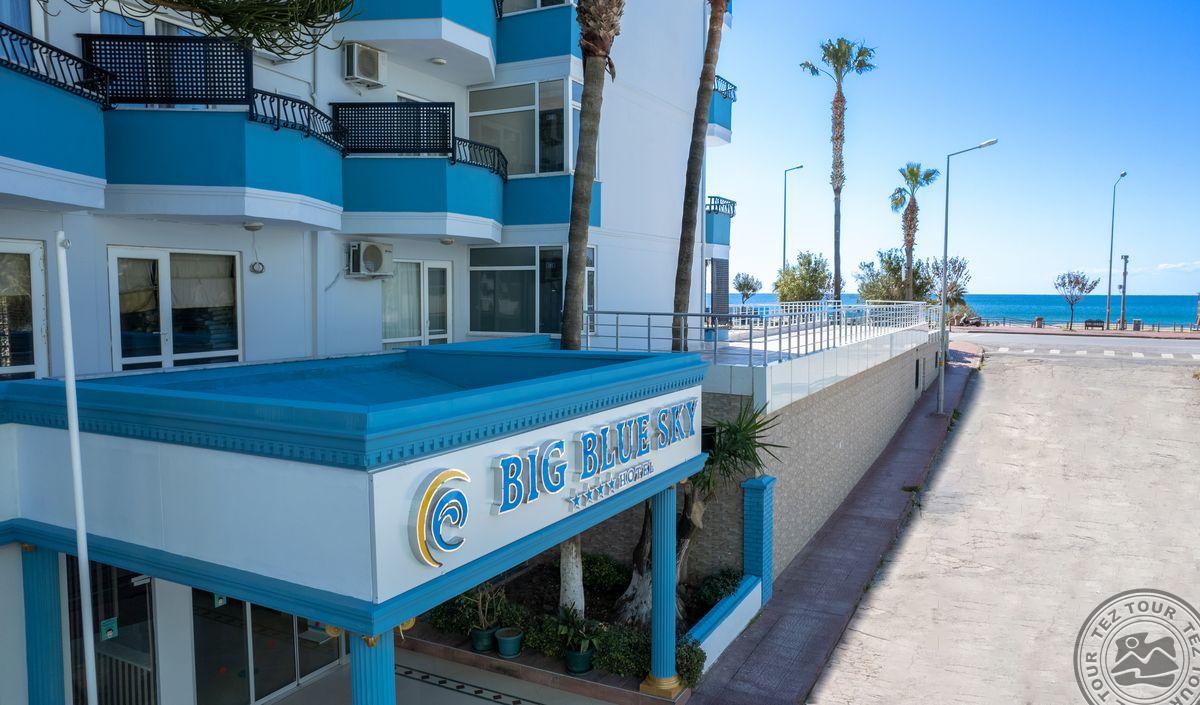 Месторасположение Отель BIG BLUE SKY HOTEL 4 *: в 120 км от аэропорта г. Анталья, в 40 км от аэропорта Алании, в 2 км от центра г. Алания, в 20 м от собственного пляжа.