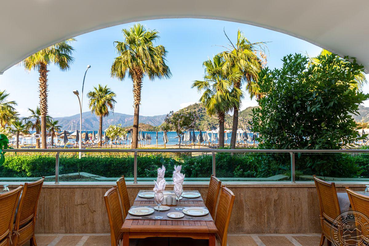 в центре Ичмелера, в 8 км от Мармариса, в 100 км от аэропорта Даламана, на берегу моря.