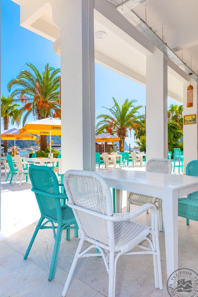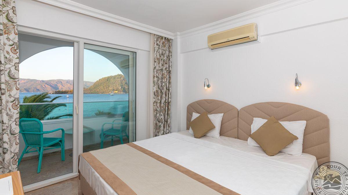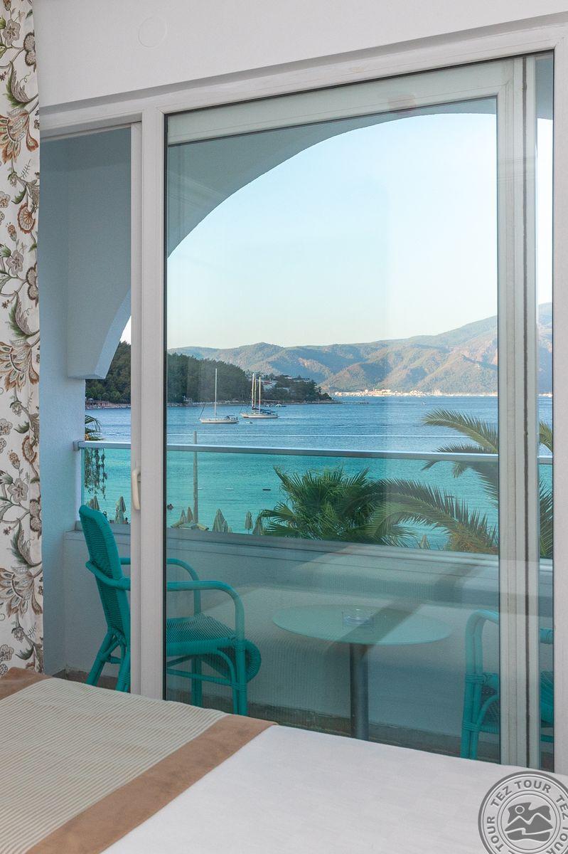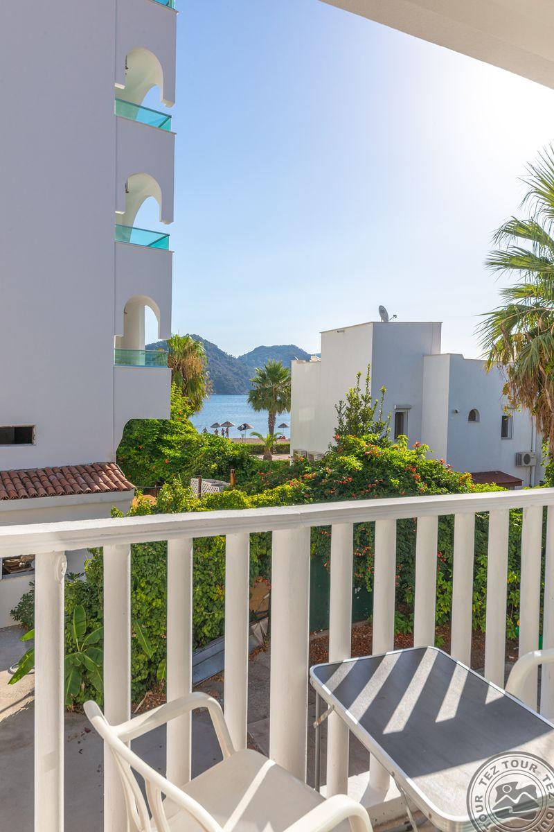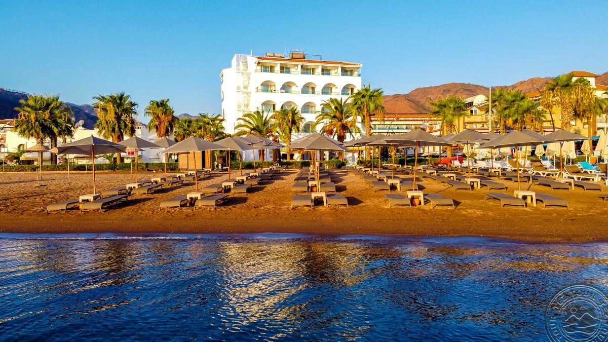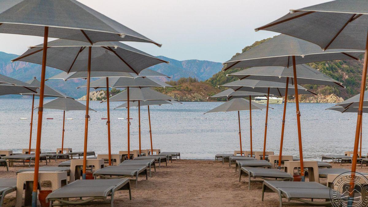 в Ичмелере, в 8 км от Мармариса, в 100 км от аэропорта Даламана, на первой линии.
