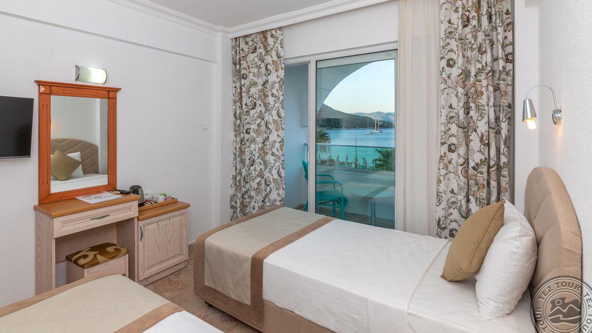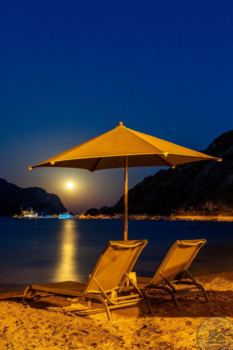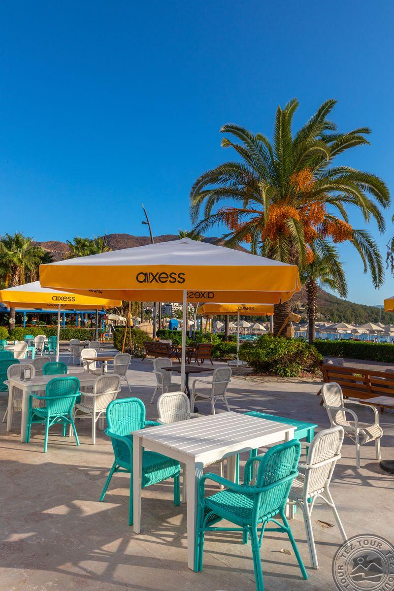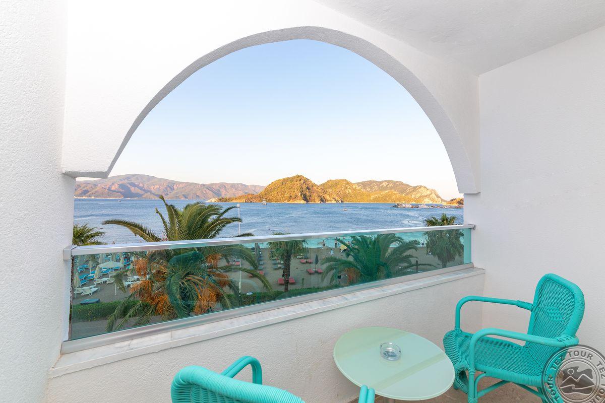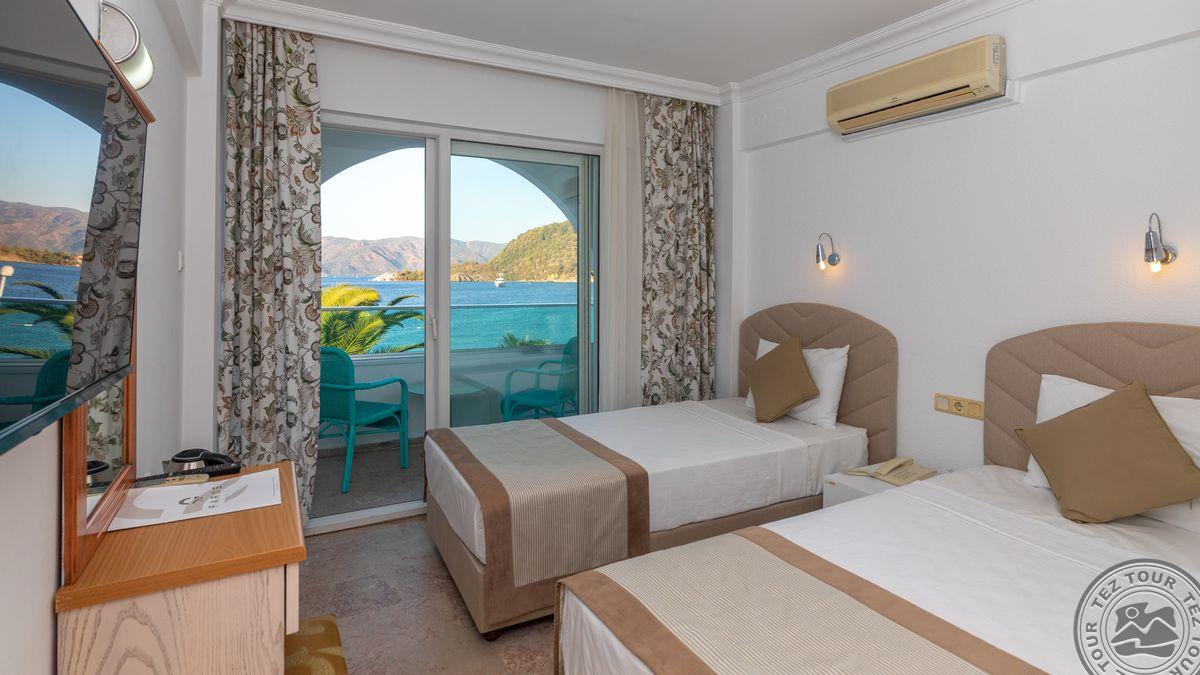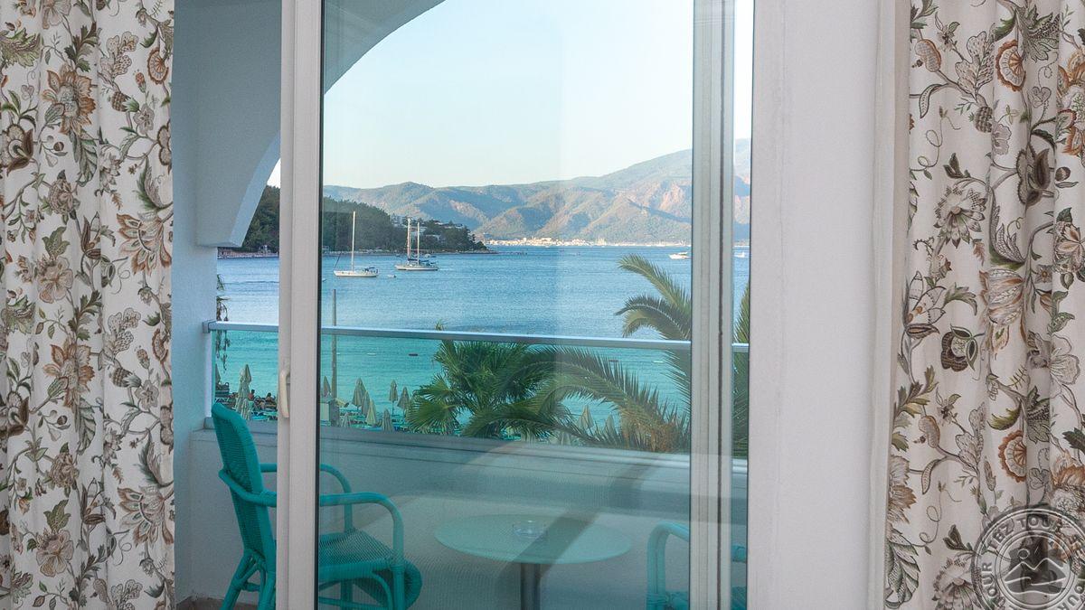 в Ичмелере, в 8 км от Мармариса, в 100 км от аэропорта Даламана, на первой линии.
