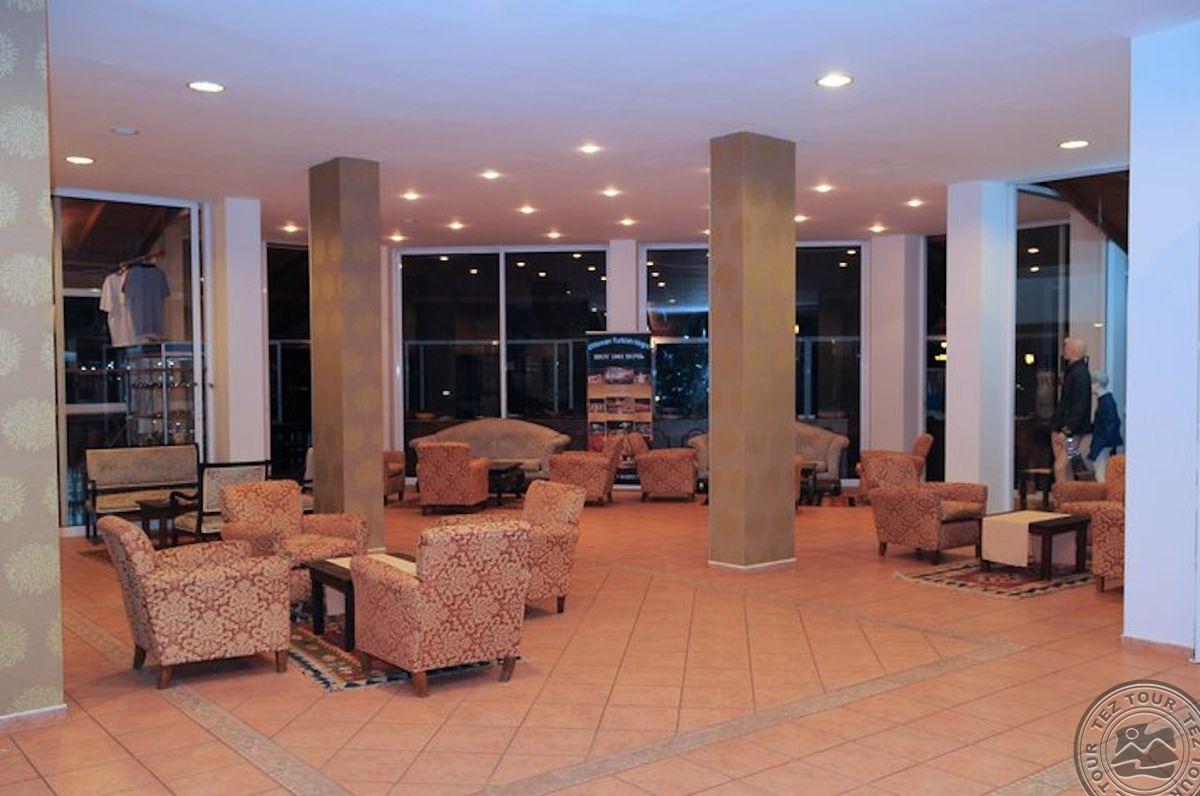 в 55 км от аэропорта г. Анталья, в 45 км от центра г. Анталья, в центре г. Кемер, рядом с пешеходной улицей, в 350 м от городского пляжа, в 800 м от собственного пляжа (транспорт предоставляется).