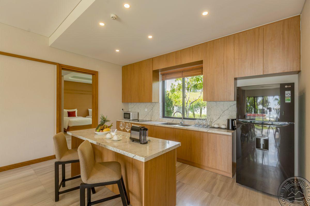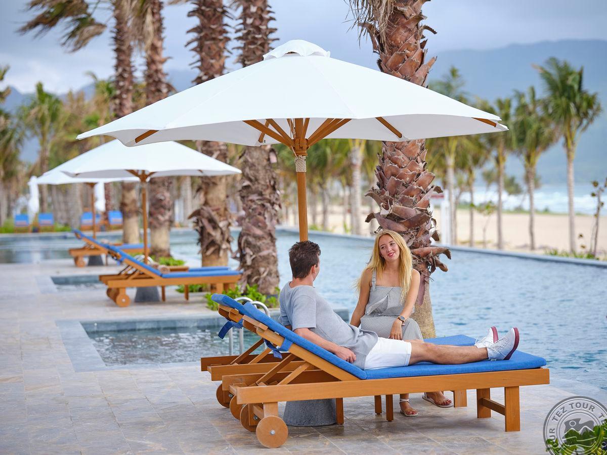 в Камрань, в провинции Кханьхоа, в 25,8 км от центра г. Нячанг, в 9,8 км от аэропорта Камрань, на берегу моря (через дорогу).