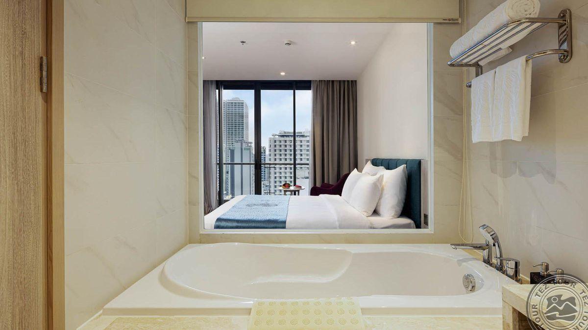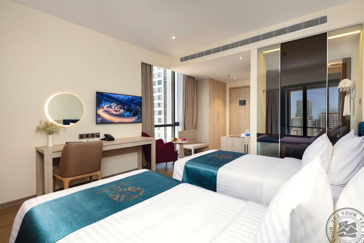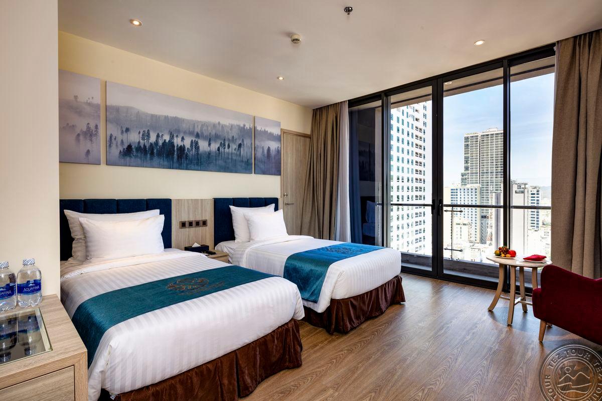 Отель расположен рядом с прекрасным пляжем и очень удобен для туристов, желающих посетить множество красивых мест, развлекательных центров и магазинов, многие магазины расположены рядом с отелем. Хорошо оборудованными номера, бассейн на крыше. Найдите любимые коктейли из тропических фруктов в лобби-баре Otium на крыше, ресторан отеля предлагает морепродукты, блюда вьетнамской или азиатской/западной кухни. Фитнес-центр, сауна, спа, массаж в отеле являются идеальным местом, чтобы расслабиться и отдохнуть после напряженного дня.