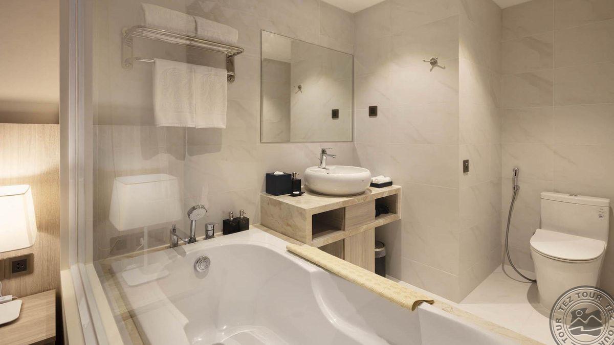 18 Junior Suite Double (6-27 этаж, вид на город, однокомнатный номер, двуспальная кровать, макс. 2+2 или 3 чел., 48 м2);