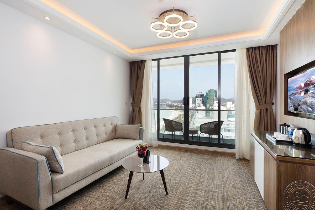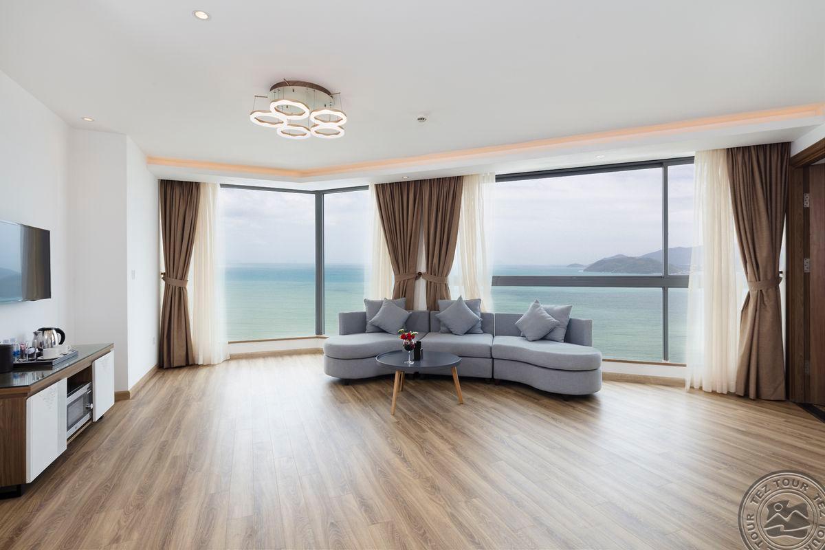 9 Comodo Grand Suite Sea View Double (21-26 этаж, частичный вид на море, гостиная и спальня, двуспальная кровать, балкон, макс. 3+1 чел., 60 м2);