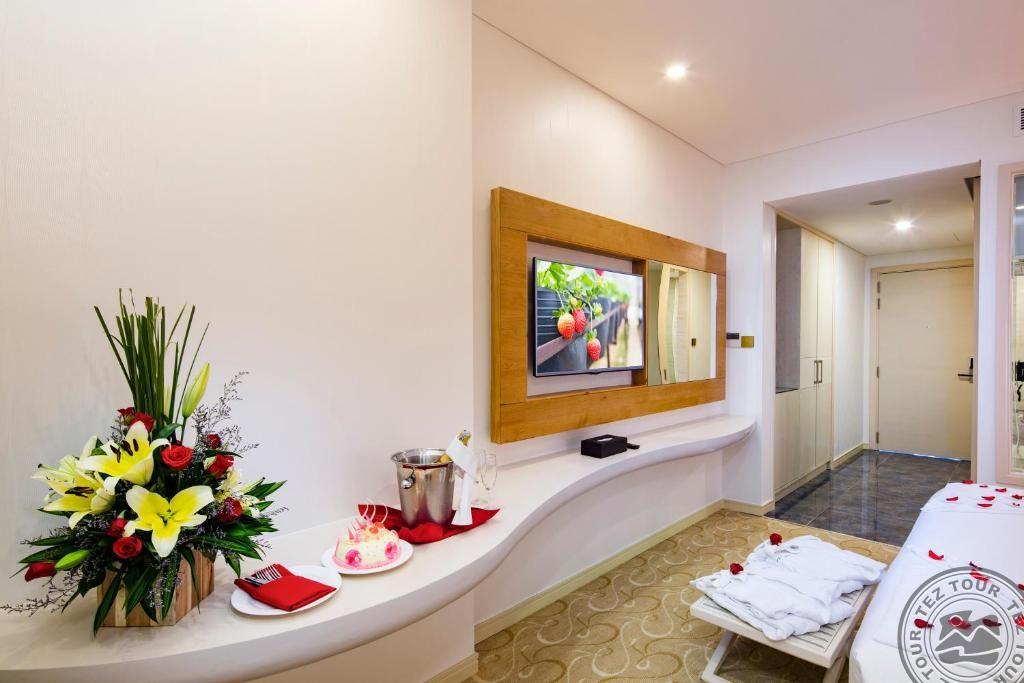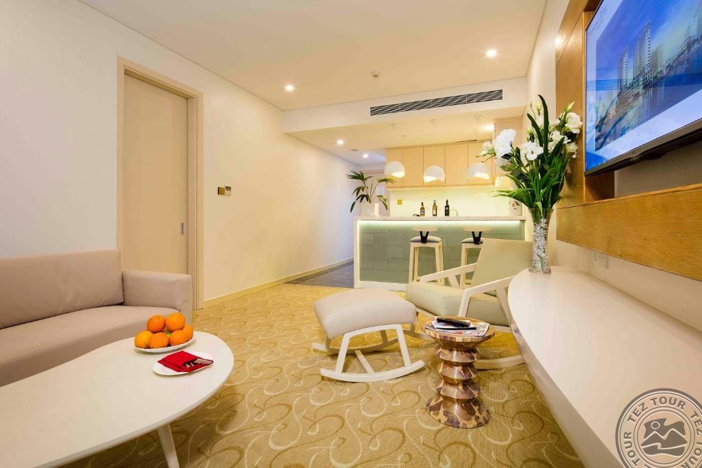 27 Suite Room (9-18 этаж, вид на море, гостиная, мини-кухня, спальня, двуспальная кровать, 2 ванные комнаты, балкон не во всех номерах, макс. 3+1 чел., 63 м2);