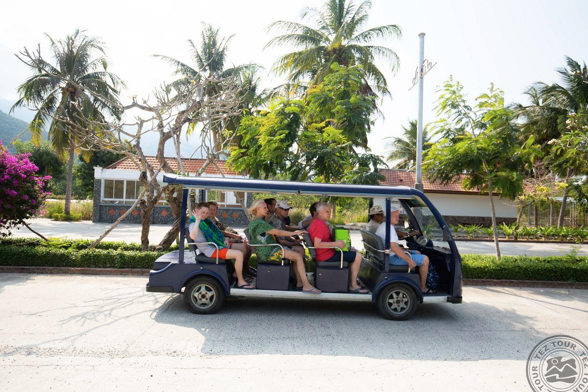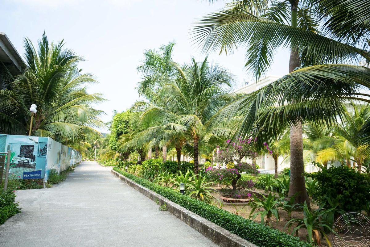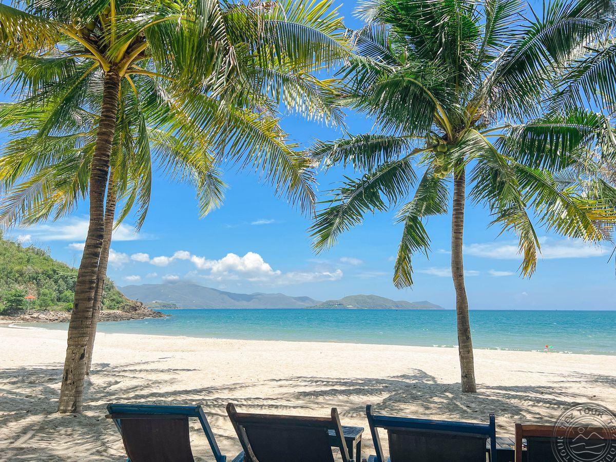 в провинции Кханьхоа, в 25 км от аэропорта г. Камрань, в 450 км от Хошимина, в 10 км от центра города, через променад от пляжа.