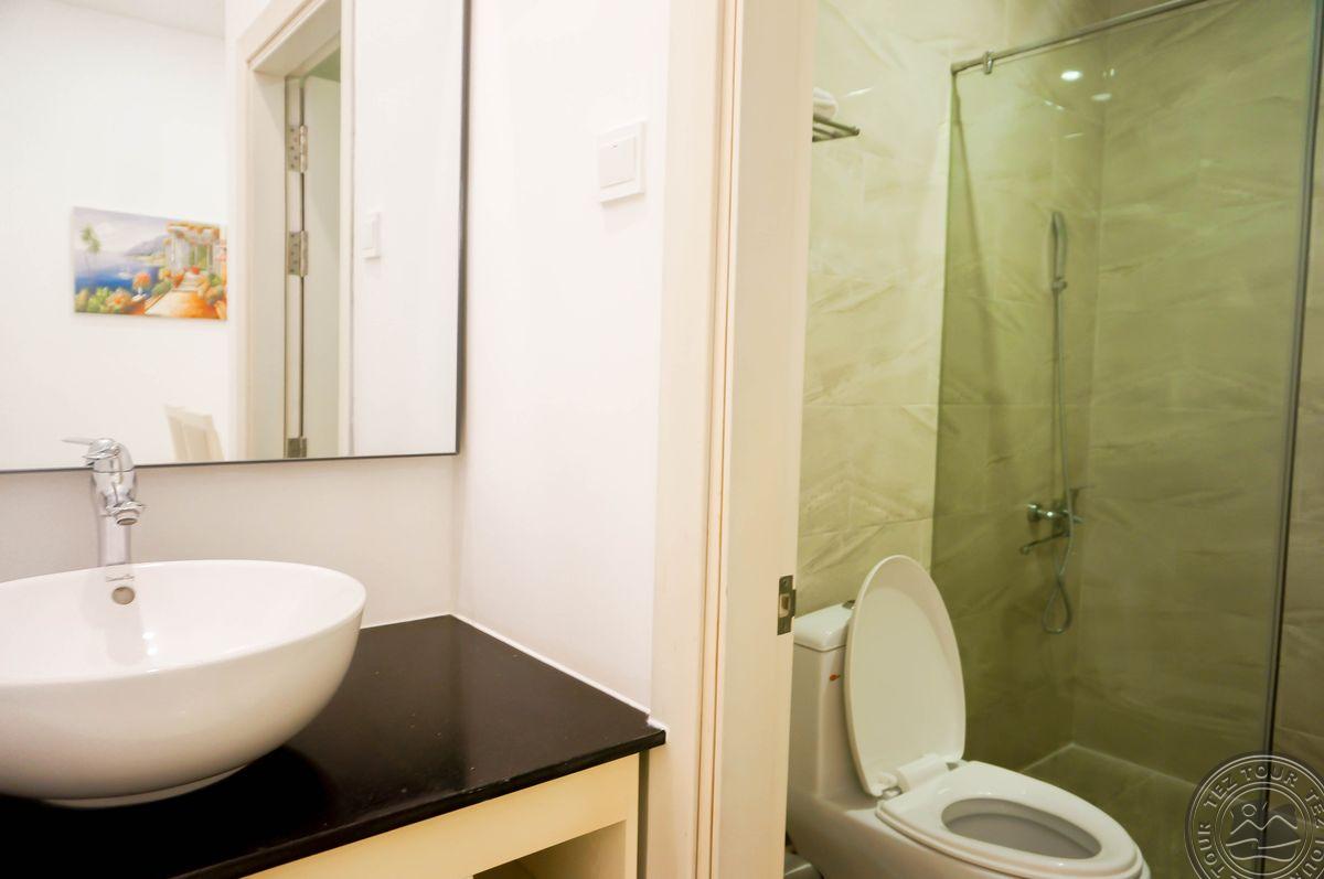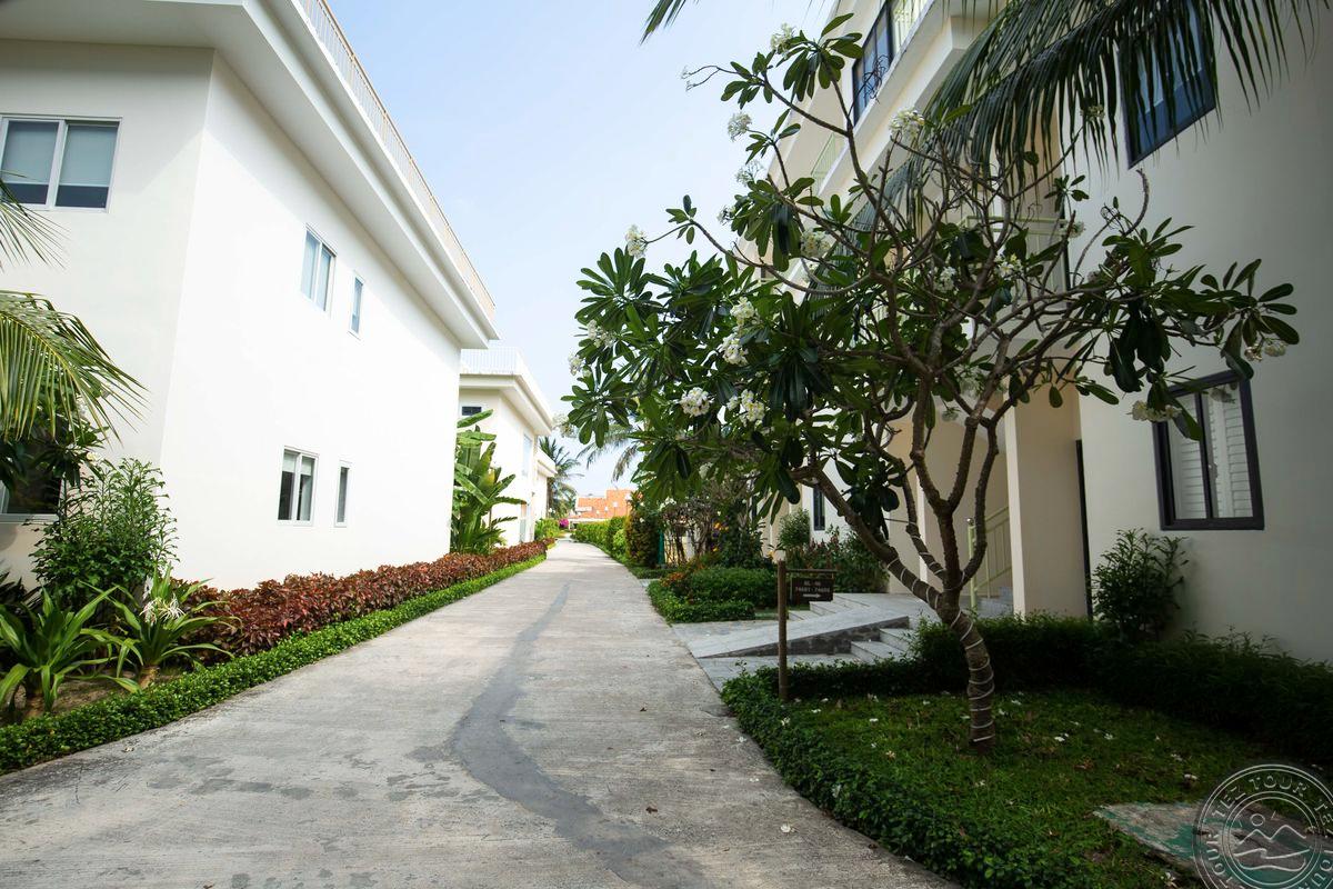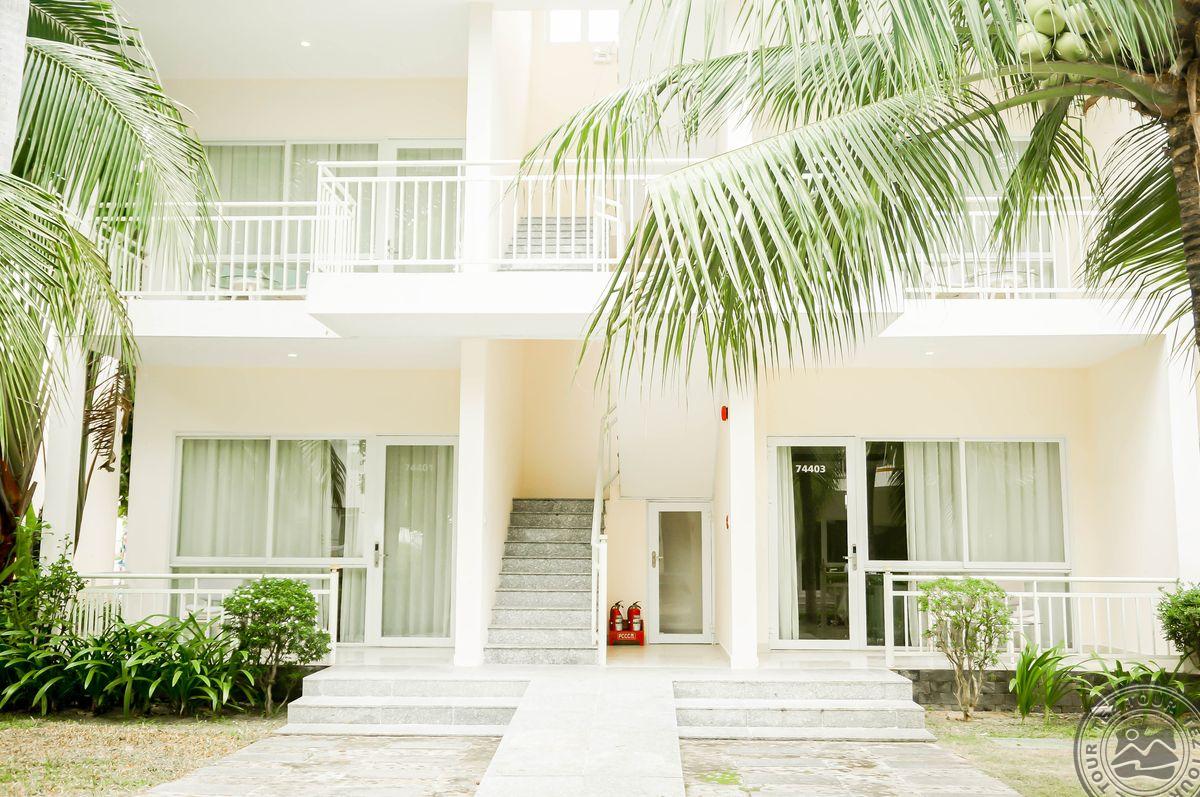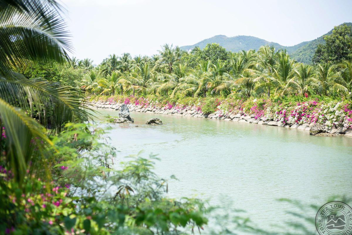 в провинции Кханьхоа, в 25 км от аэропорта г. Камрань, в 450 км от Хошимина, в 10 км от центра города, через променад от пляжа.
