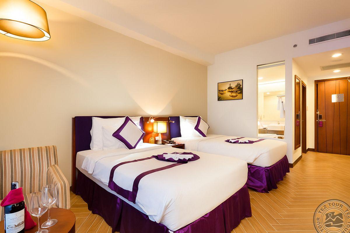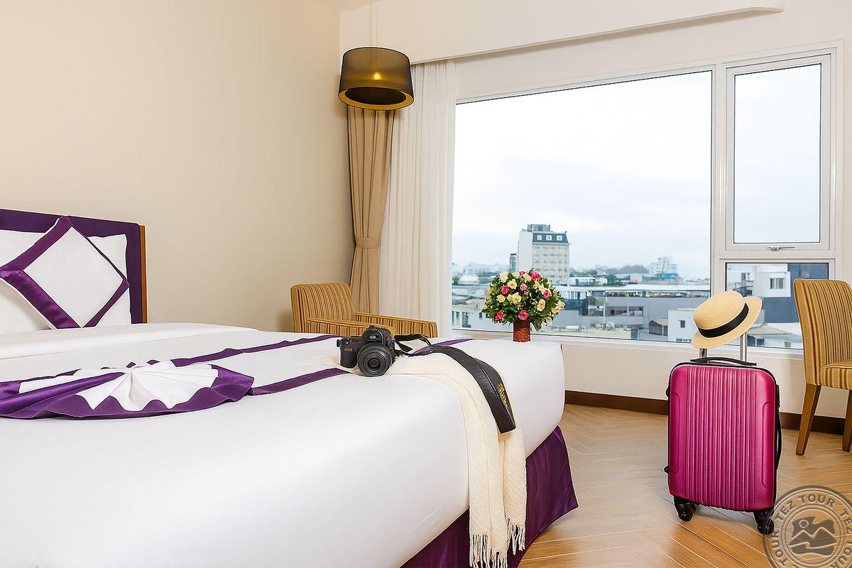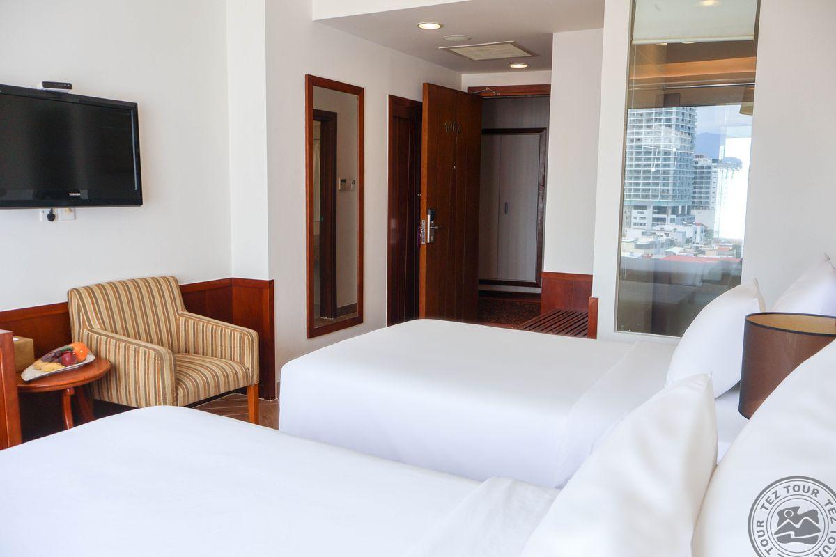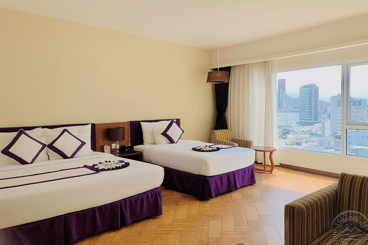 Расположен в самом сердце красивого приморского города Нячанг. Из отеля открывается панорамный вид на город и океан. Хорошо оборудованные, просторные номера.