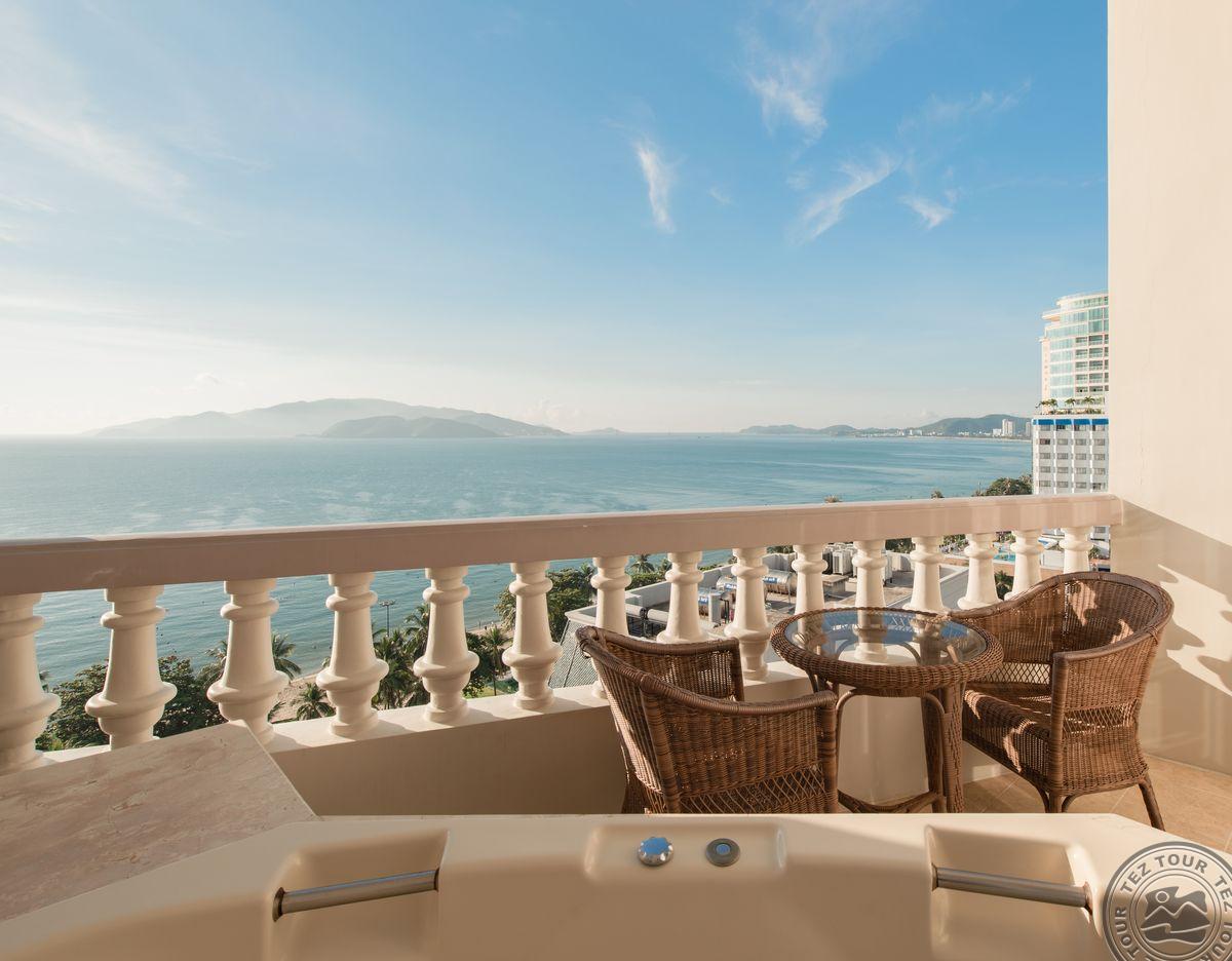 1 Junior Suite Ocean View (основное здание, 10 этаж, вид на море, спальня с зоной гостиной, двуспальная кровать, джакузи на открытом воздухе, макс. 2+2 или 3 чел., 60 м2);