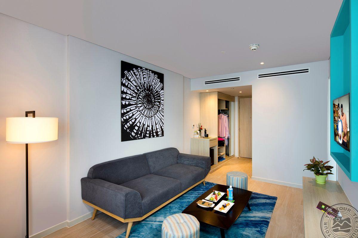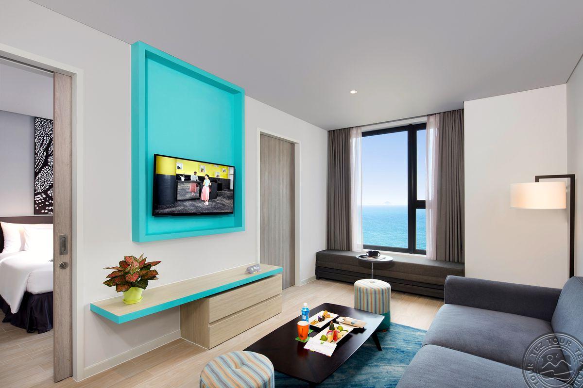 10 Family Suite (19-23 этаж, вид на море, гостиная и спальня, двуспальная кровать, макс. 2+2 или 3 чел., 46 м2);